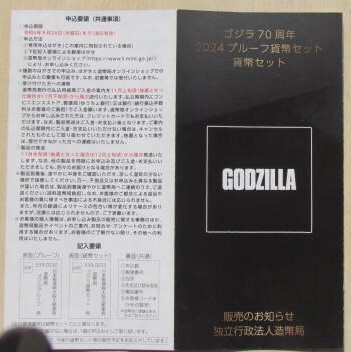 ゴジラ70周年2024プルーフ貨幣セットの未開封品です。造幣局パンフも付けます。