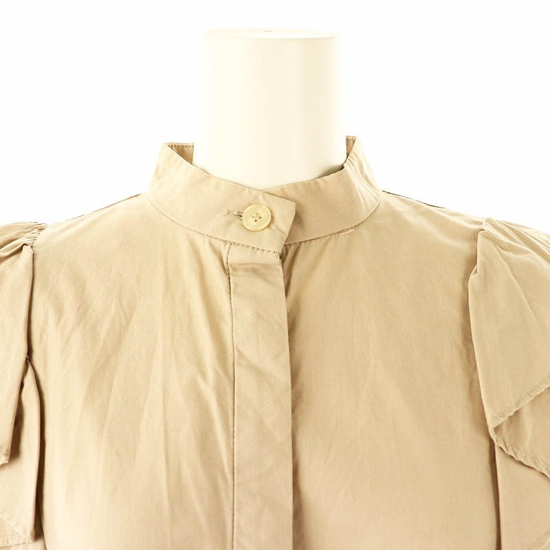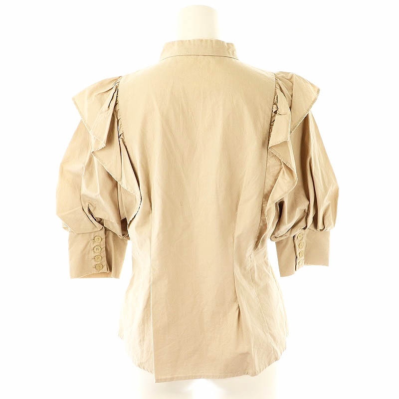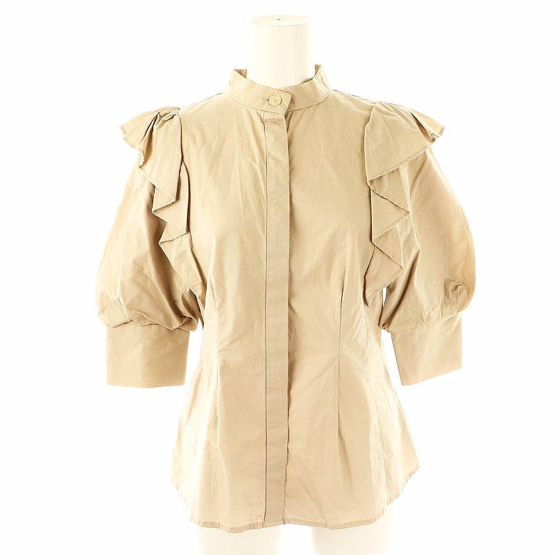 スナイデル SNIDEL サステナブル Sustainableフリルスタンドカラーブラウス シャツ 七分袖 フロントボタン F ベージュ