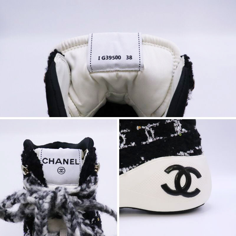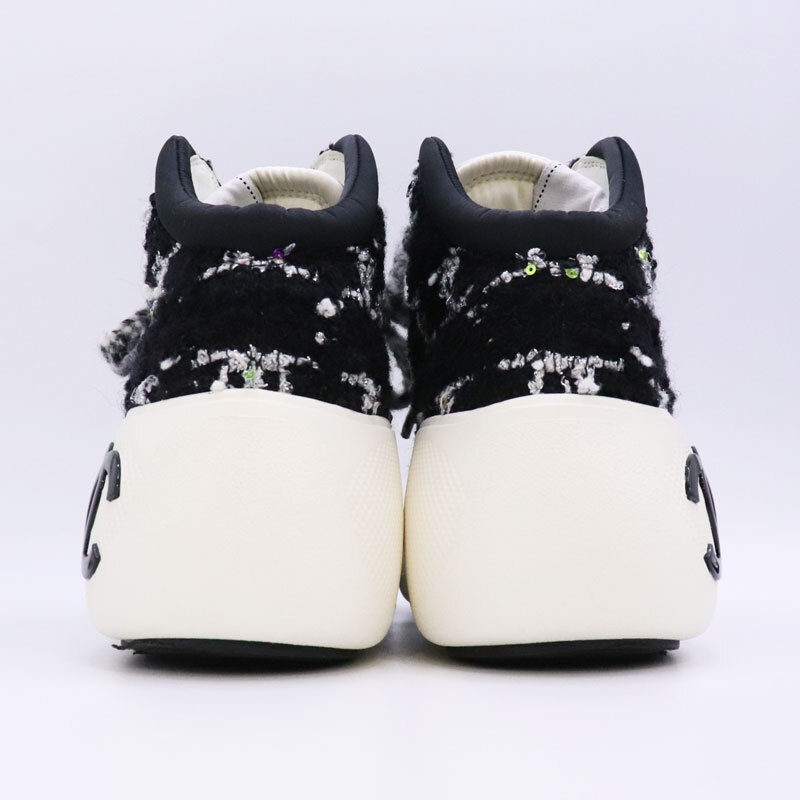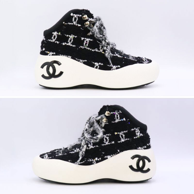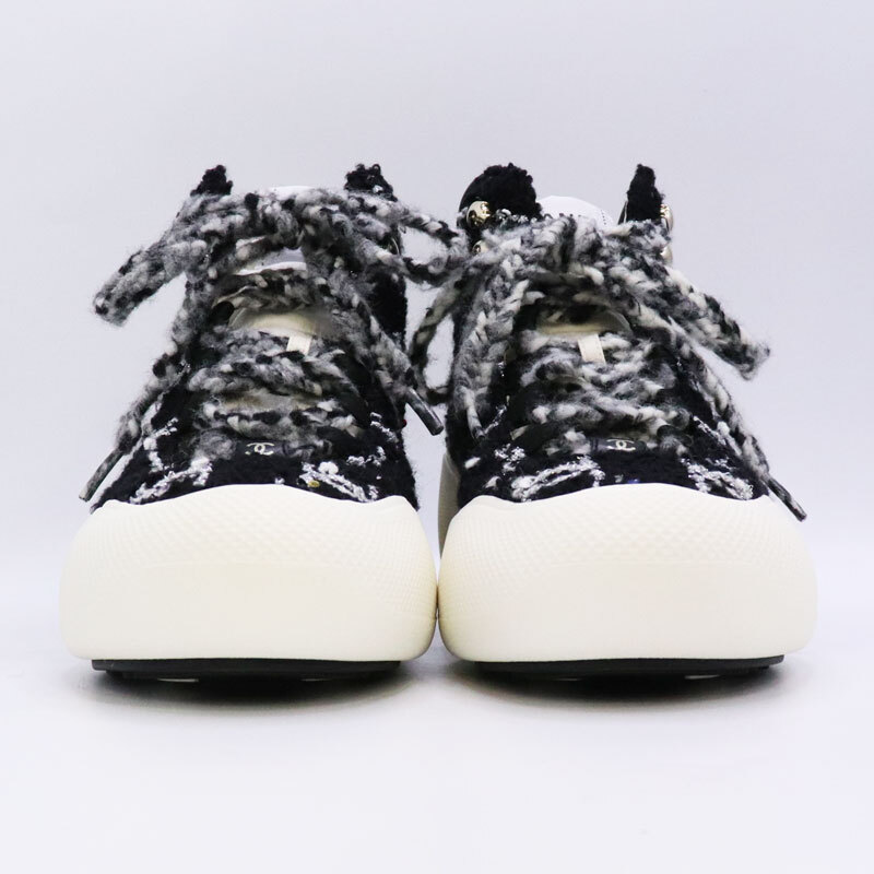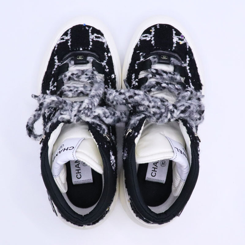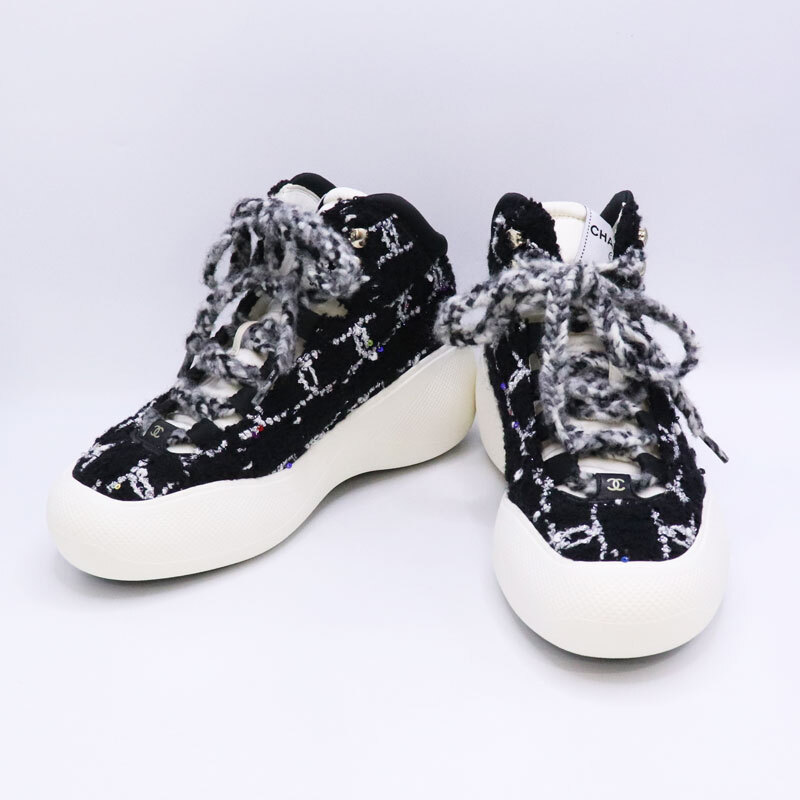 【試着程度美品】CHANEL シャネル 22N ココネージュ ツイードレースアップ スニーカー 厚底 #38 25cm レディース ブラック G39500