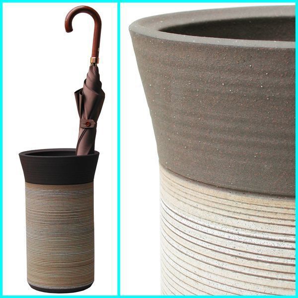 【即納OK】【サイズ】外径255mm×高さ430mm(約) 【重量】約6kg 傘立て底:クッションシート付き 古来より脈々と受け継がれた信楽焼の伝統技術と、現代建築にもよくマッチするモダンなデザインが融合した傘立てです。手造り製品のため、サイズ、重量に多少の誤差がある事がございます。