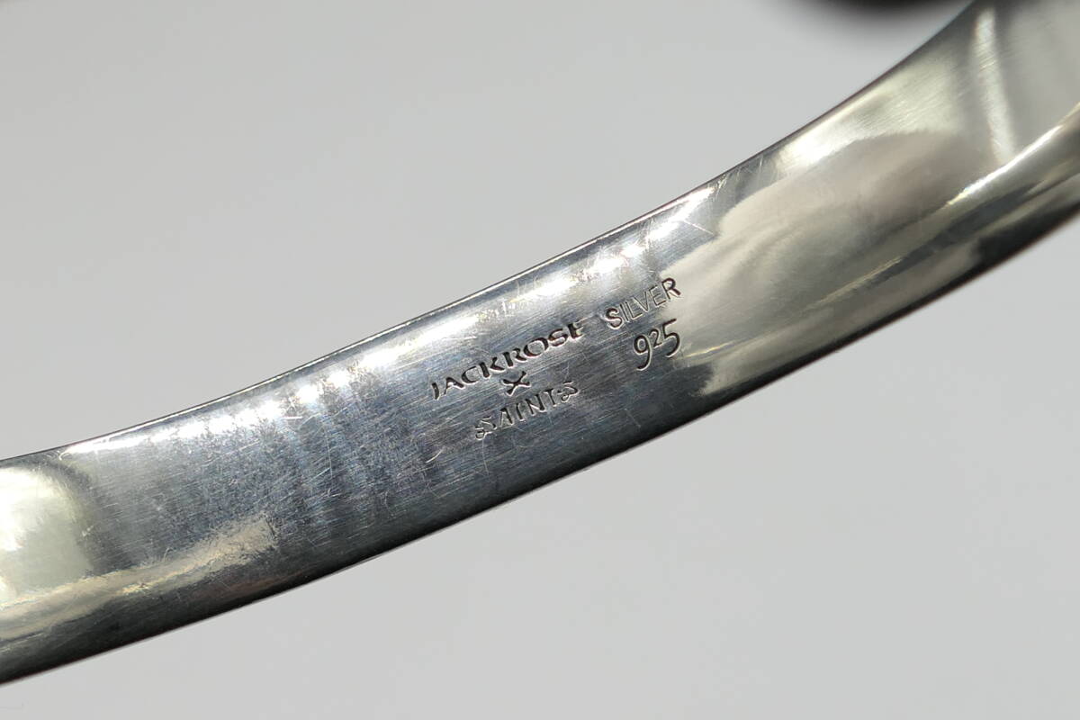 silver925製で厚みと重厚感のあるしっかりとしたバングルに、「JACKROSE×SAINTS」とデザインされています。