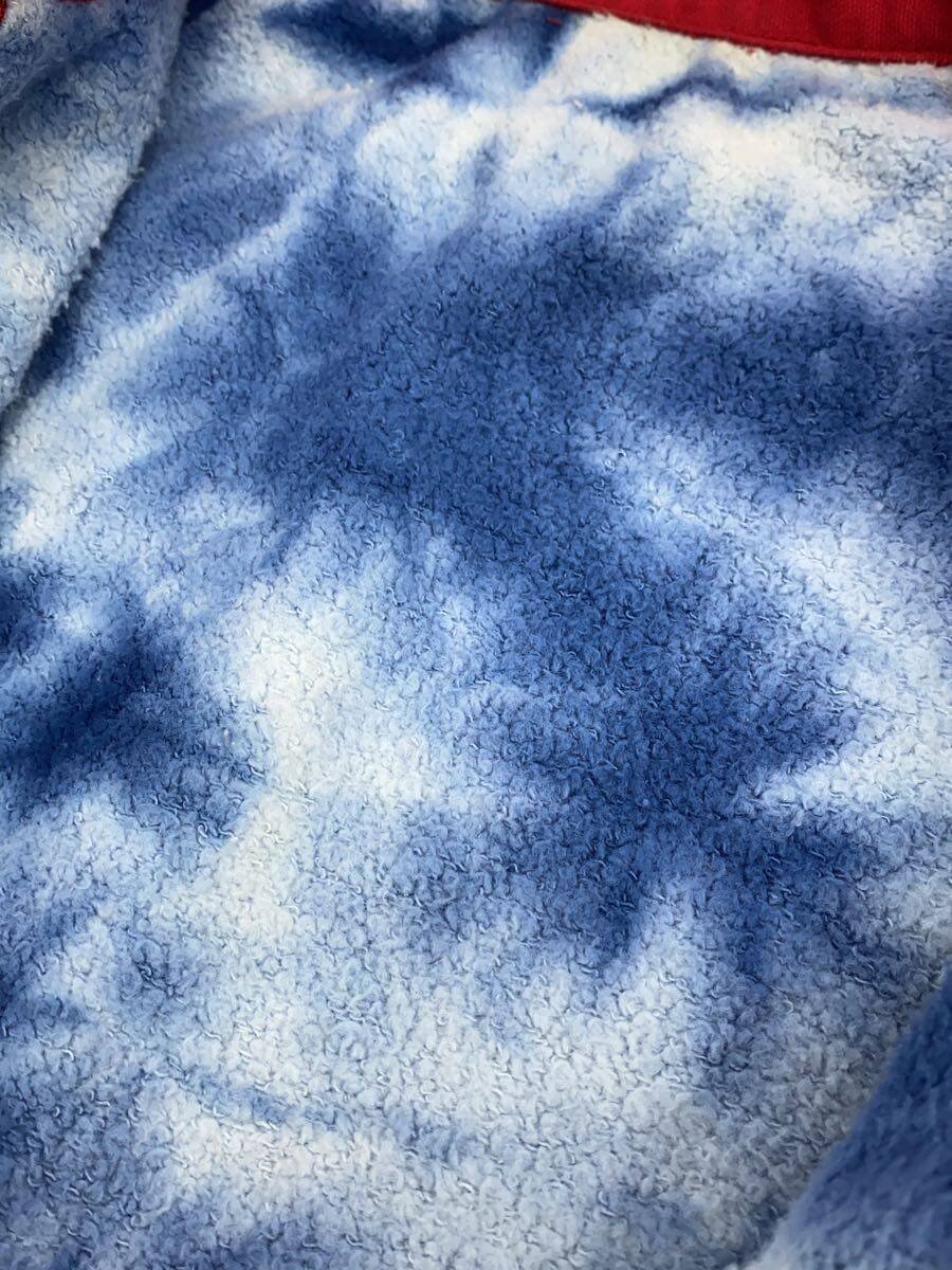 襟や袖に汚れ・フロント変色・裏ボア潰れや毛玉が見受けられます。 |
