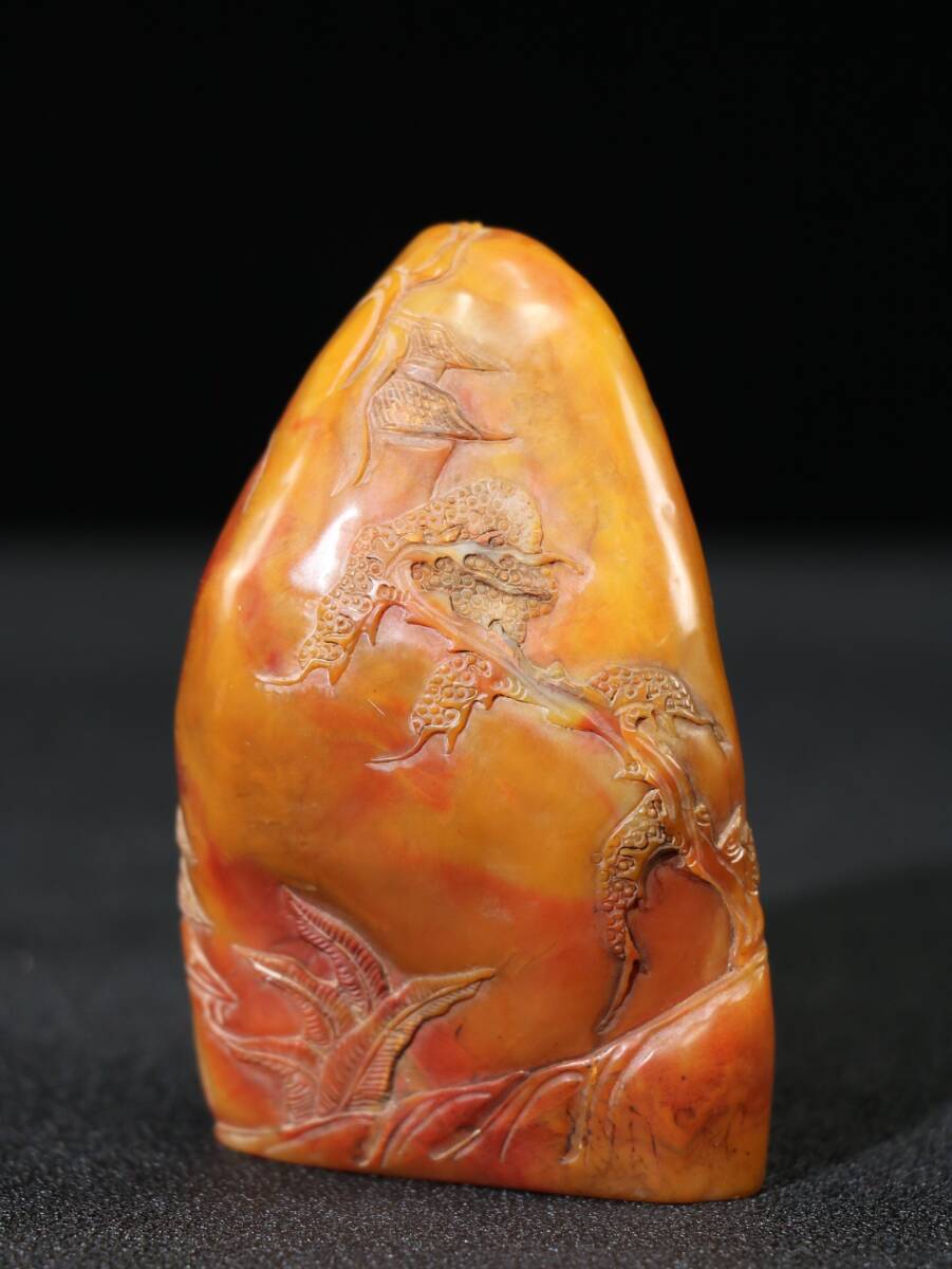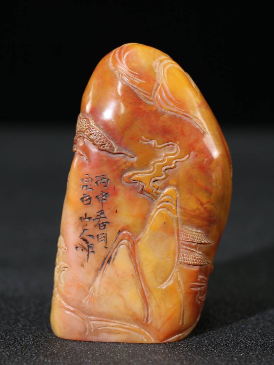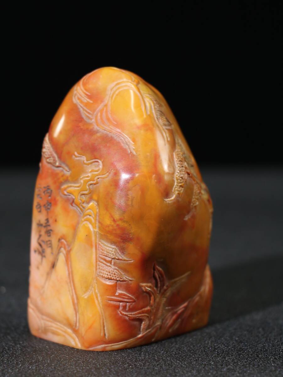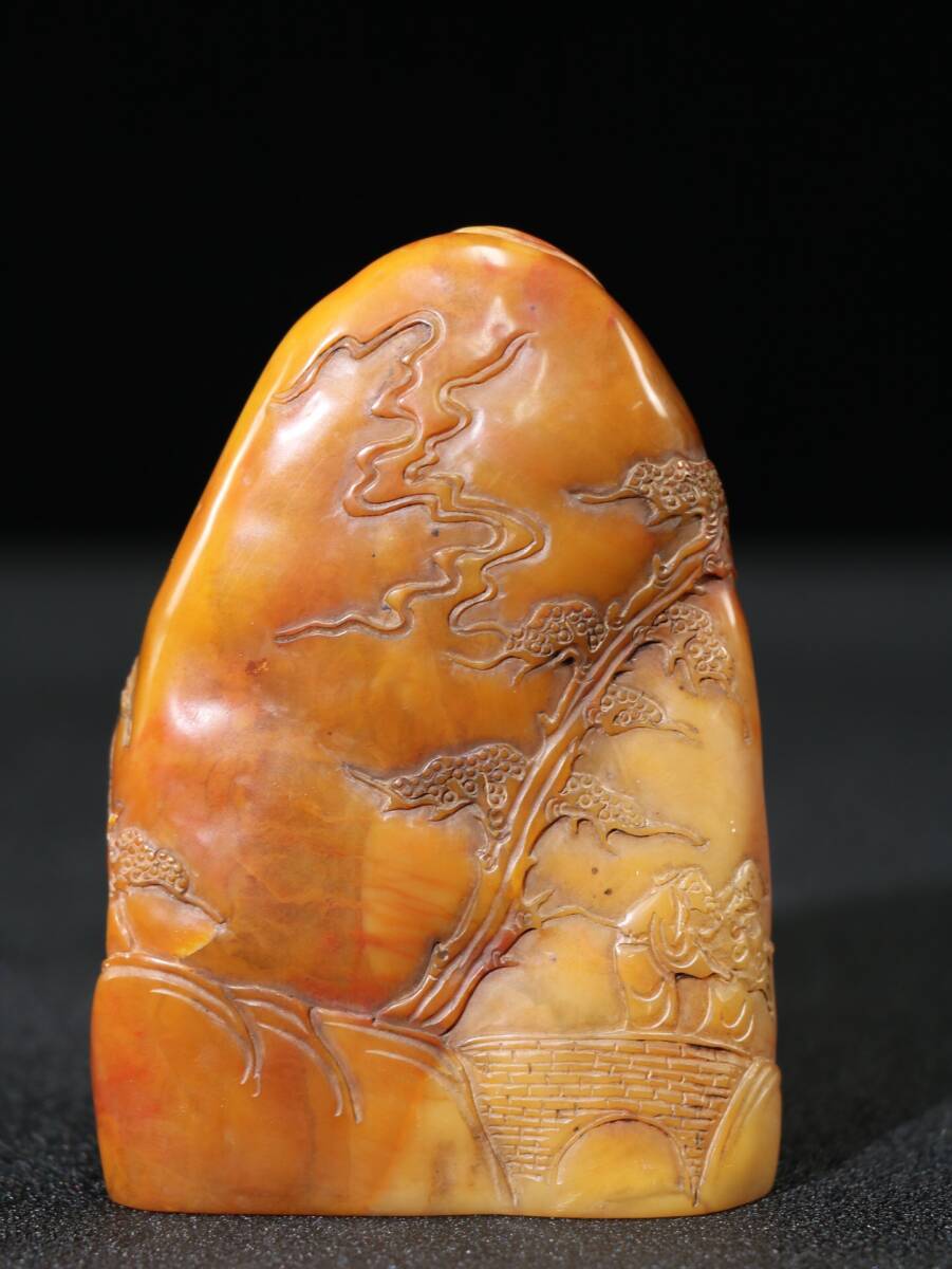 【超珍館蔵】寿山石 田黄石 細密彫 指日高升紋印章 置物 古賞物 古美術品 稀少珍蔵品