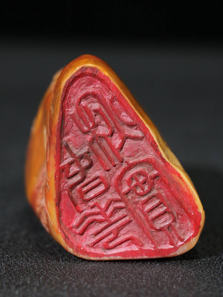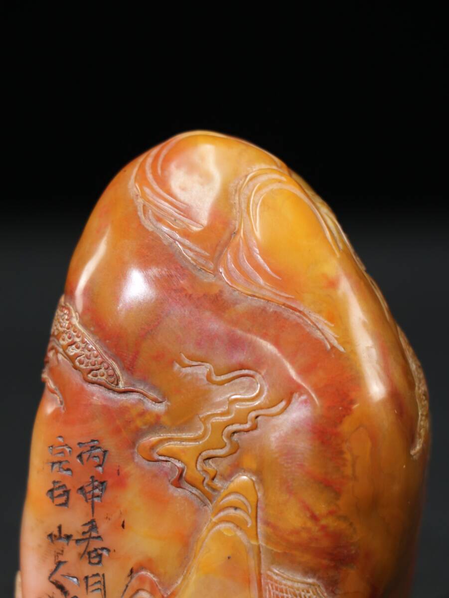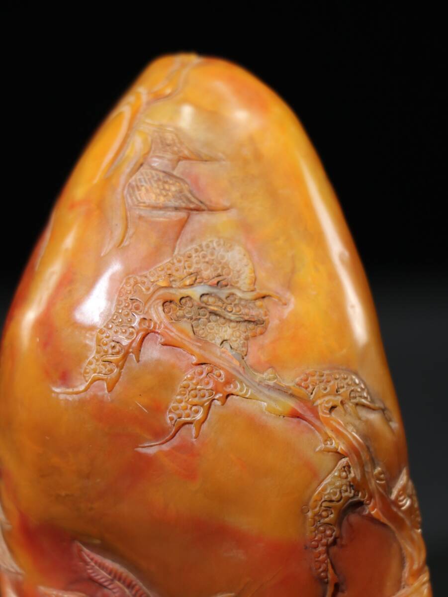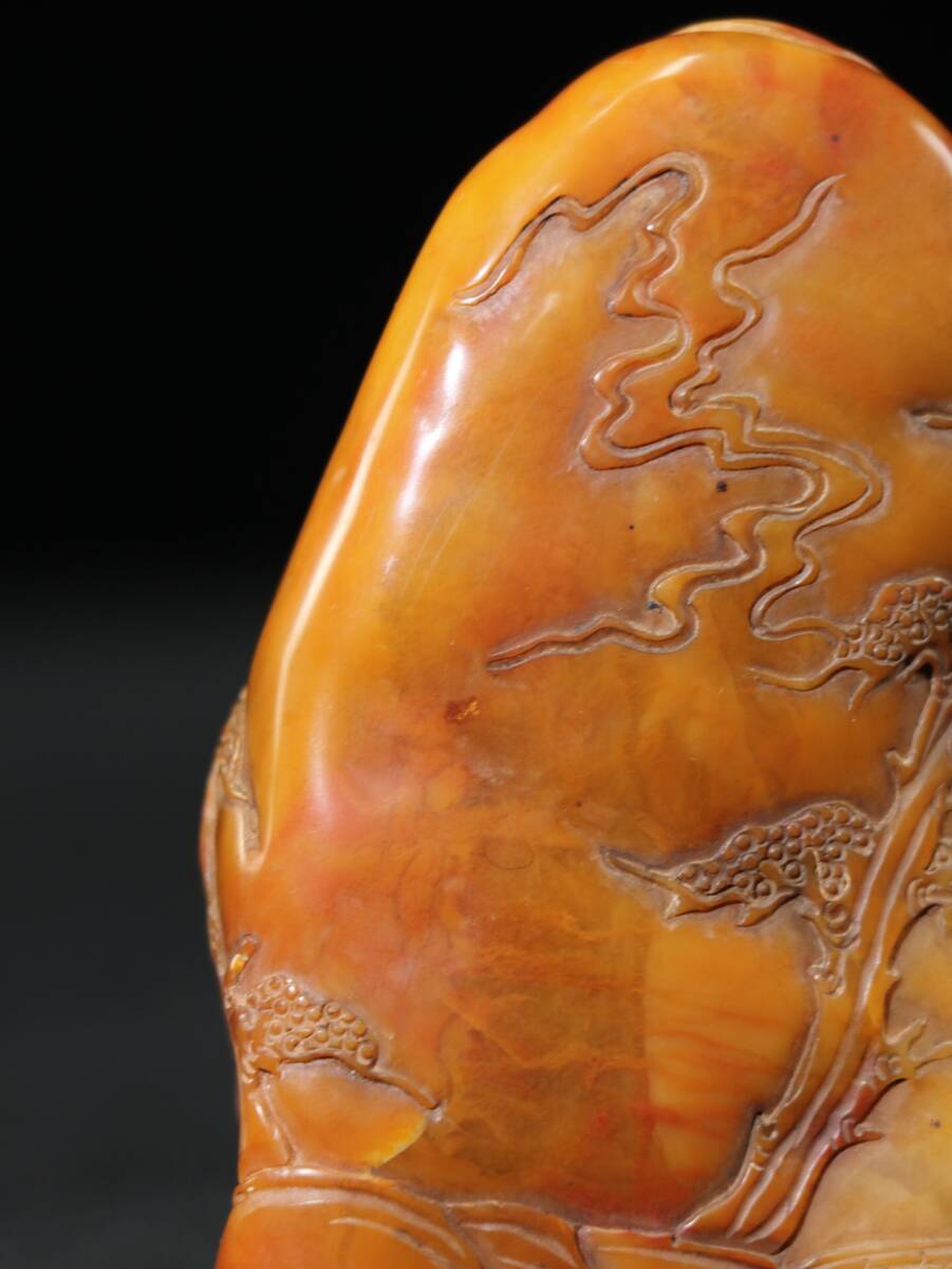 【超珍館蔵】寿山石 田黄石 細密彫 指日高升紋印章 置物 古賞物 古美術品 稀少珍蔵品