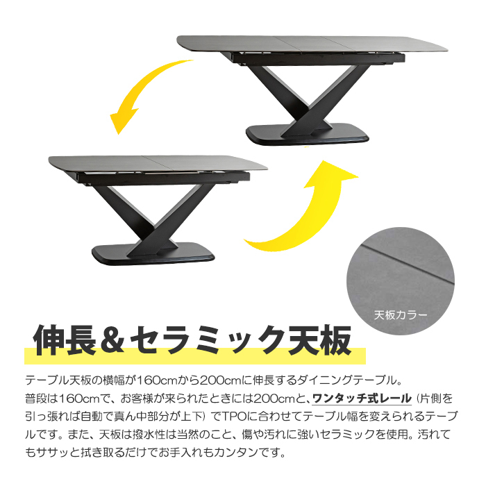 特  徴幅160cmから200cmに伸長する拡張テーブル。