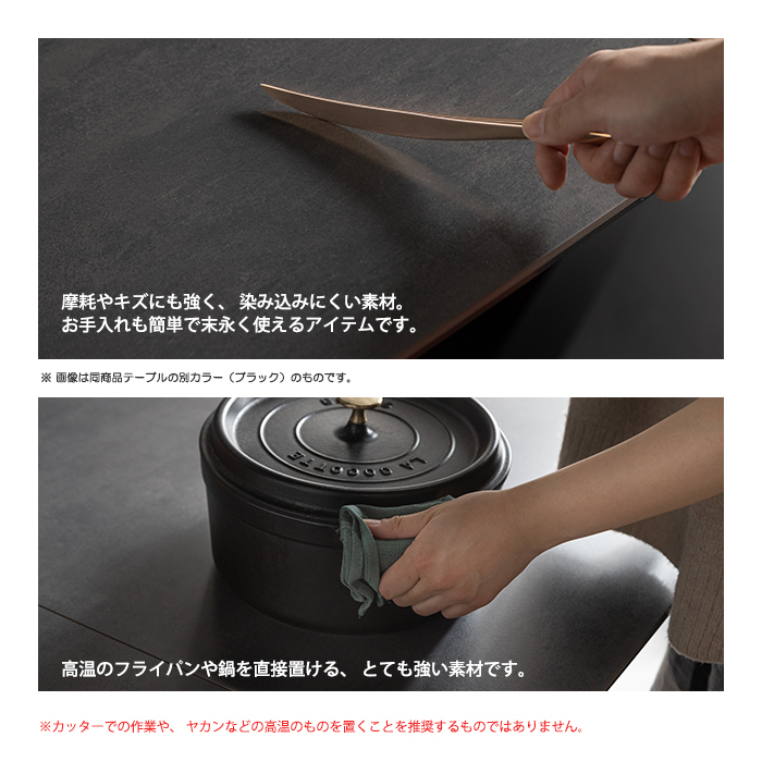 ワンタッチ式レールで簡単に伸長でき、天板はキズや熱に強いセラミック仕様。