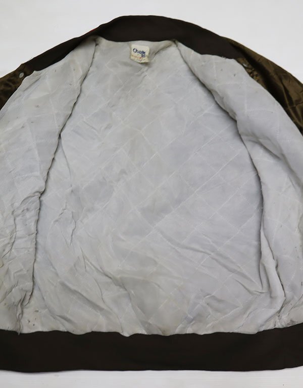 90年代頃のアメリカ製CHALK LINEのナイロンジャケットの茶系の薄中綿入りです。