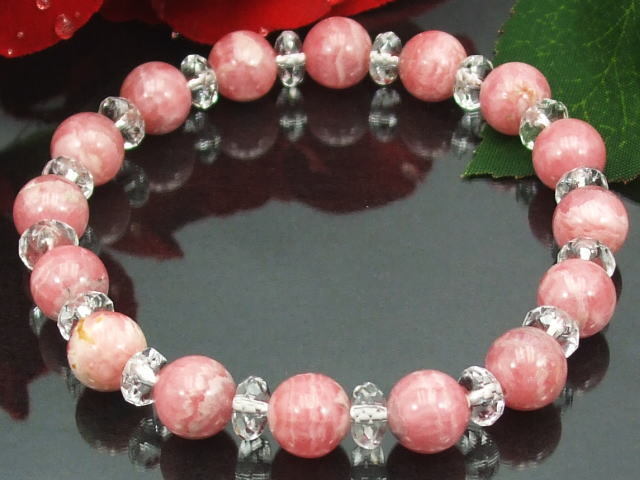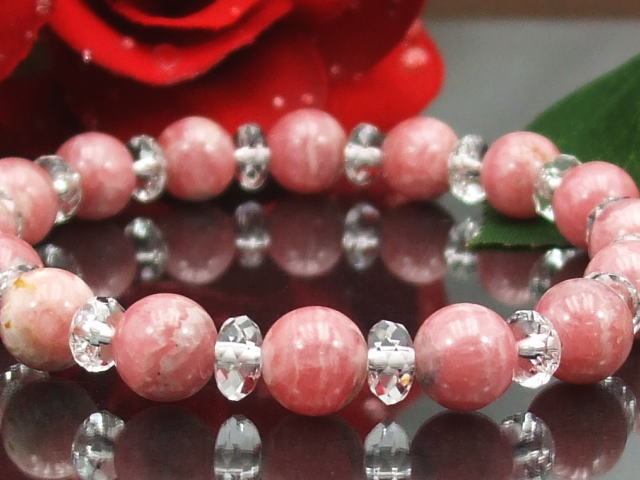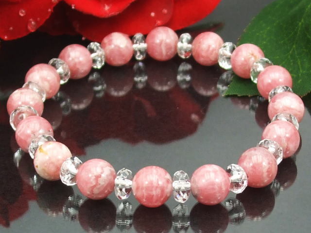 ロロロ 素材 ロロロ インカローズ(ロードクロサイト)8ミリ カット水晶 サイズは約17.5cm(内径約16cm) サイズ変更は無料です♪
