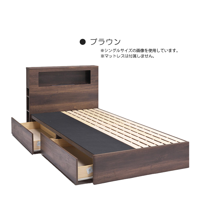 ダブル ベッド すのこベッド Dサイズ 宮付き 木製 ベッドフレーム LED照明 LEDライト コンセント ブラウン