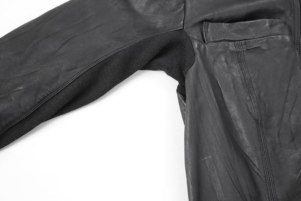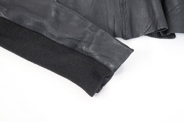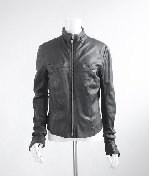 Rick Owens ◆ レザー ジャケット 黒 サイズ40 (国内正規品) 羊革 ジップアップ ボトルネック リブ切替 リックオウエンス ◆53/WX4