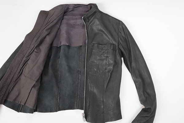背抜き仕立てですので体にフィットし、オーバーコートのインや春レザーとしても着用いただけます
