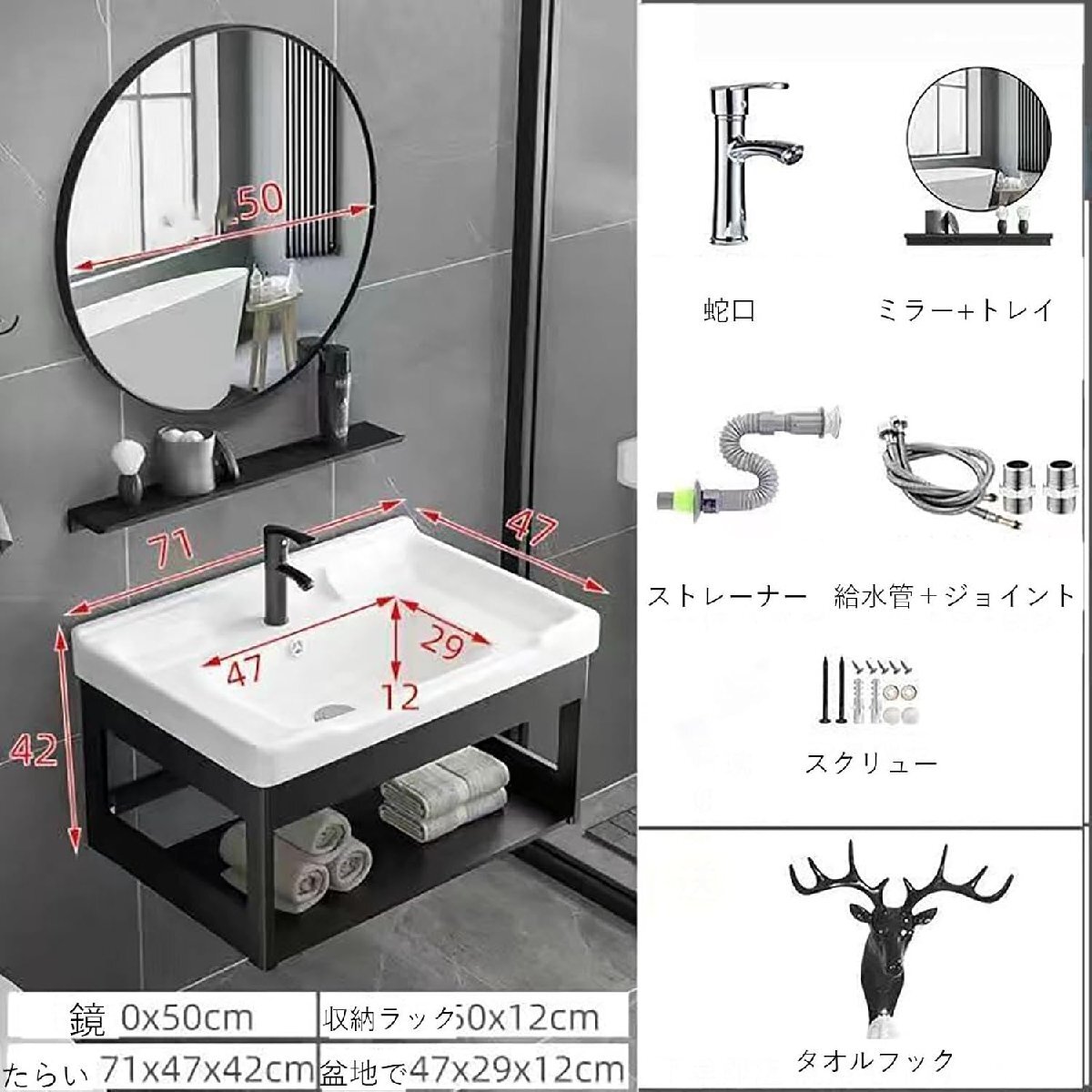 製品詳細:製品名: セラミック洗面器製品仕様:43*35*42cm、51*36*42cm、50*30*42cm、60*40*42cm、71*47*42cm、80*47*42cm、製品材質:アルミニウム合金+セラミック製品の色: 黒フレーム + 白洗面器適用スペース:バスルーム、中庭、庭、学校、その他の場所。特徴:1.デザインはシンプルでファッショナブルで美しいです。2.高温で焼成されたセラミックスは耐久性があり、便利です。3. ラウンド研磨、より安全に使用できます。4.ステンレス鋼フレーム、より安定したサポート。5.占有面積が小さく、好きな場所に配置できます。6.お手入れが簡単で耐久性があります。7. 設置高さを自由に合わせることができ、より安心してご使用いただけます。より美しいラインの洗面器は、手元に芸術性を感じさせます。 本体は1200度の高温で焼成された陶器製です。 一体型の洗面器は表面が滑らかでお手入れが簡単です。前に拭くだけで済みます。 この洗面台にはオーバーフロー穴が付いているので、うっかり蛇口を閉め忘れても水が流れてしまうことがありません。 子供用トイレの蛇口を誤ってオンにしてしまう可能性があるため、赤ちゃんのいるご家庭ではこの機能がより便利です。 コーナーデザインは混雑したバスルームのスペースを最大限に活用し、実用的で省スペースなオプションとなります。 洗面器セットには、温水および冷水の蛇口、排水管、鏡、インターフェース、追加のタオルフックが含まれています。洗面器のすべてのアイテムを一度に購入できるため、買い物体験がさらに良くなります。 洗面台には下棚と鏡棚が付いており、よく使うものは鏡の下に収納できるので、洗面台の下に使用頻度の低いものを収納でき、縦のスペースを有効活用できます。より合理的な階層化ストレージ。 この製品の洗面器は丸みを帯びたデザインで、表面の釉薬の汚れもさっと拭くだけで落ちます。製品の全体的なラインは丸みを帯びており、誤って角がなく滑らかです。ぶつかっても傷つきにくいです。 設置面積が小さいため、コンパクトなスペースに最適です。