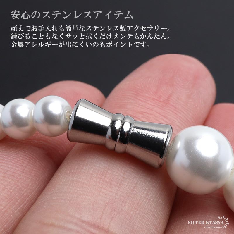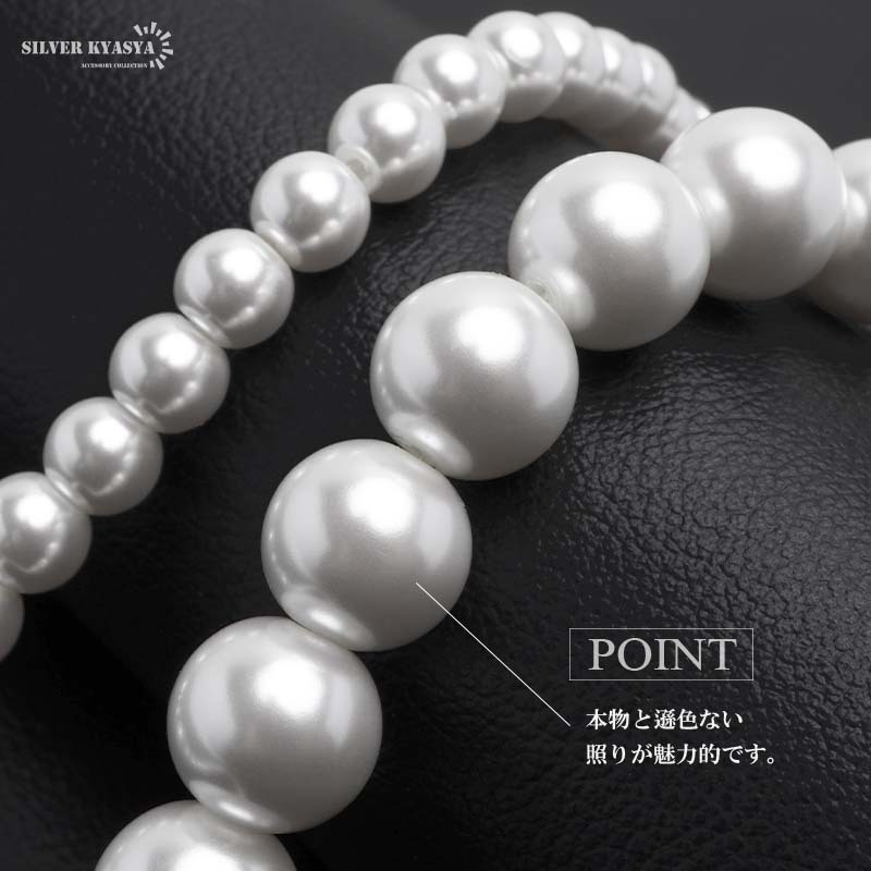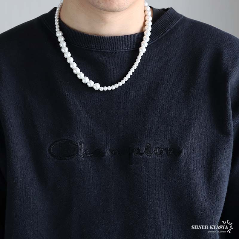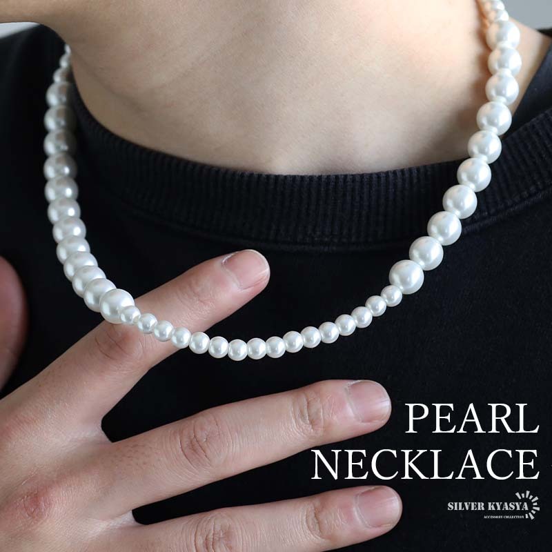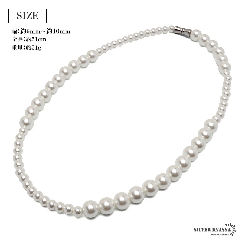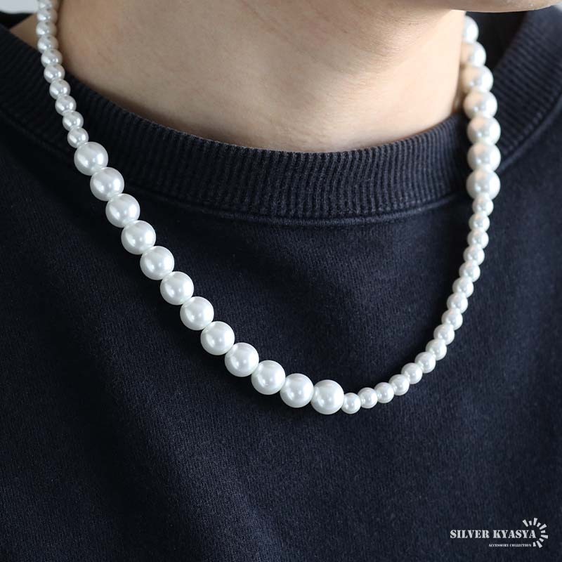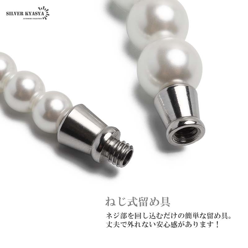 ステンレス パールネックレス 真珠 メンズネックレス 男性 6mm 10mm メンズジュエリー ホワイト ねじ式 金アレ対応