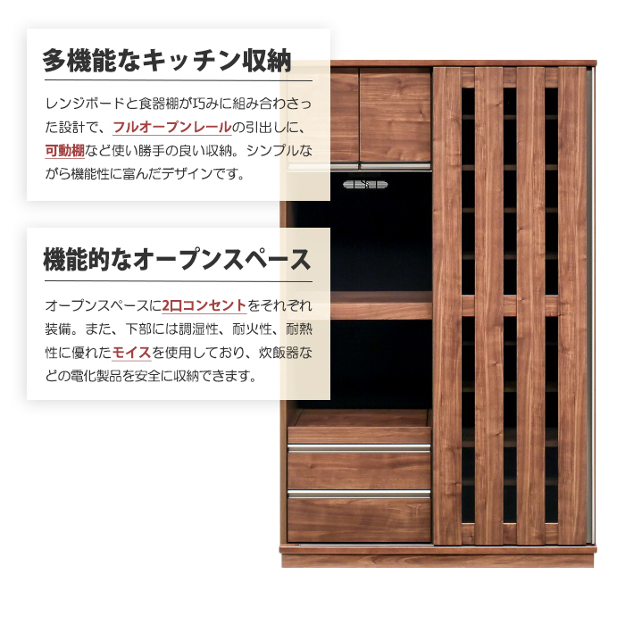 食器棚 レンジ台 キッチンボード 幅120cm 120cm幅 レンジラック カップボード キッチン 収納 電子レンジ台
