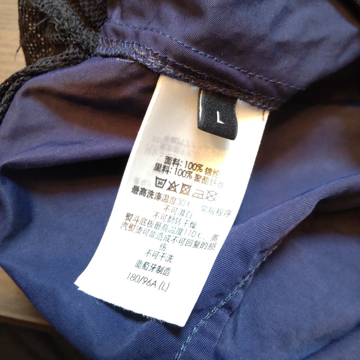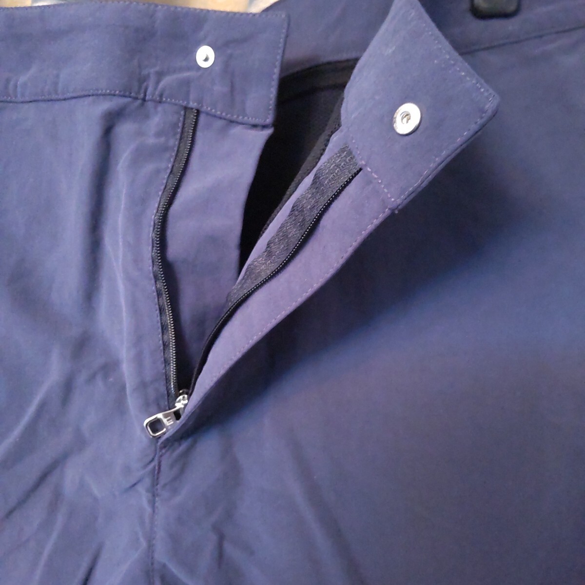 2つのサイドポケットと後ろにジツプポケット。メッシュのラインニングが内側についています。 実測: ウエスト96 股上前28.5 後38 裾幅33cm