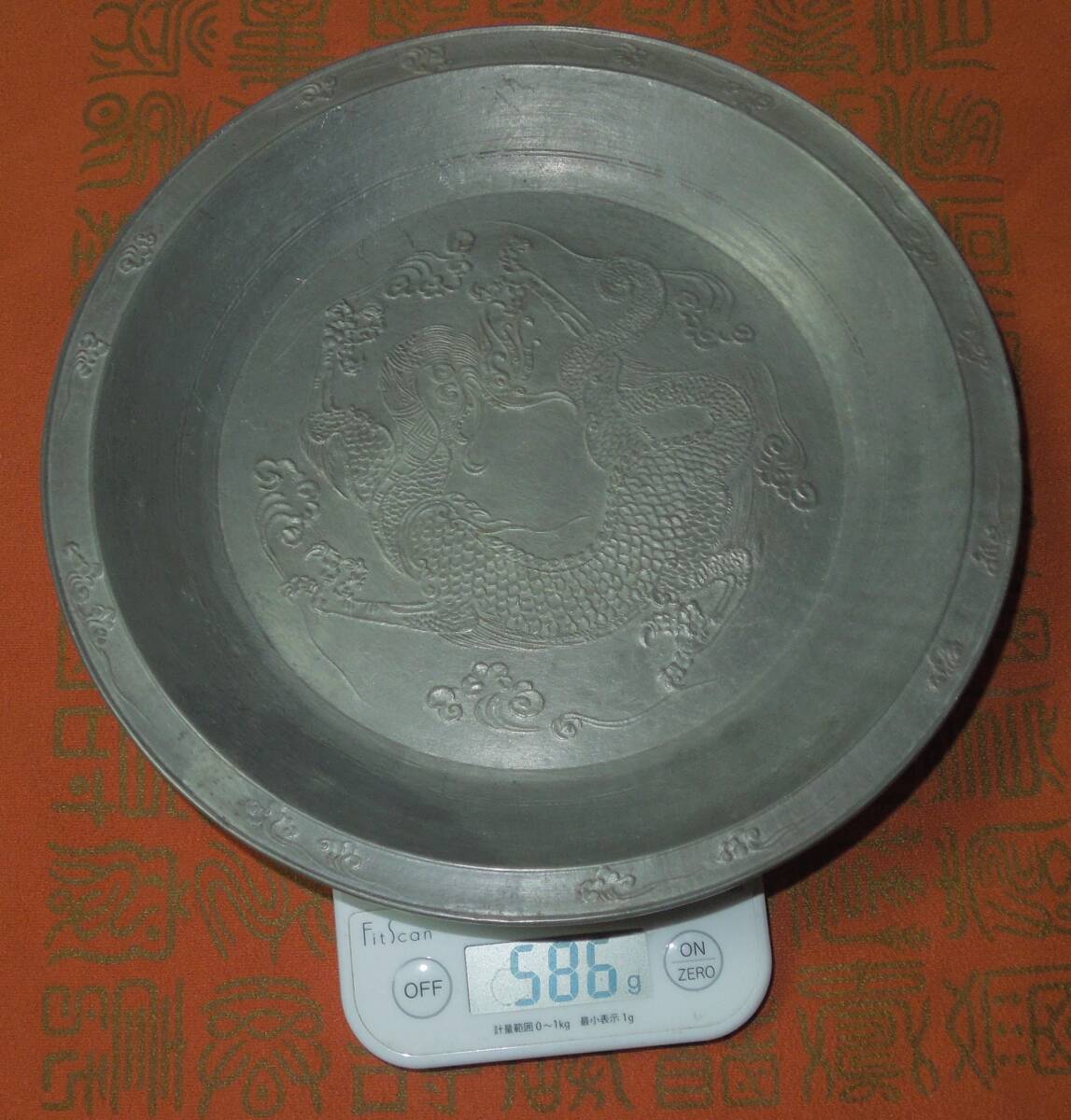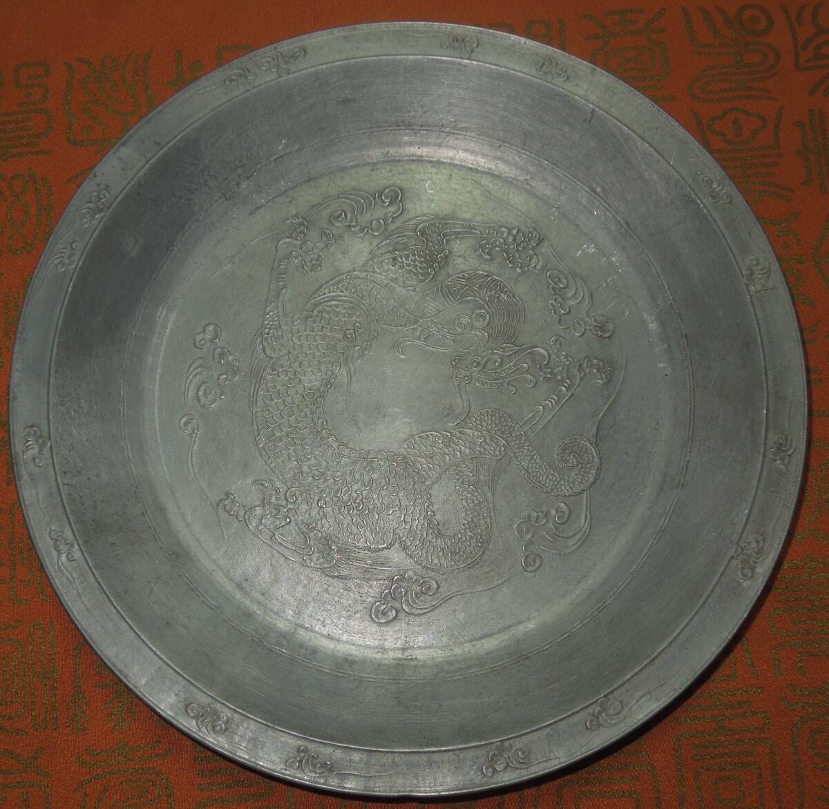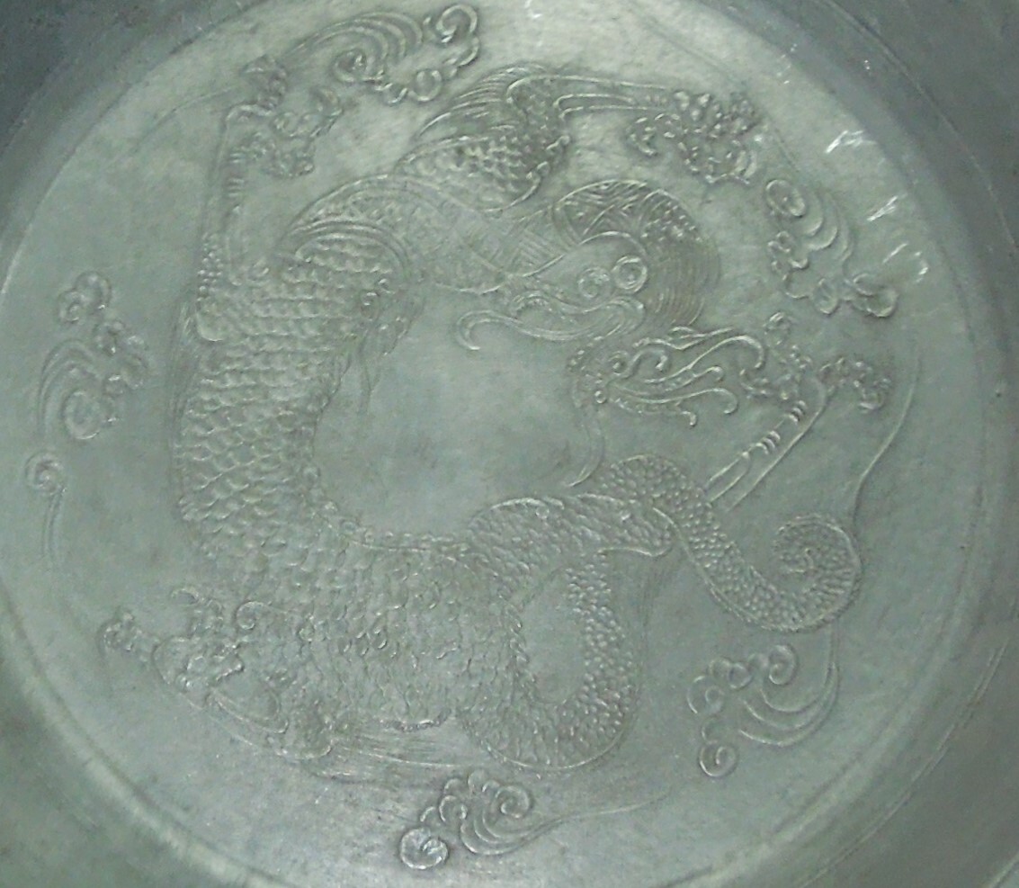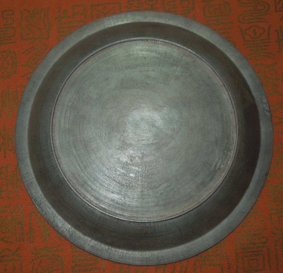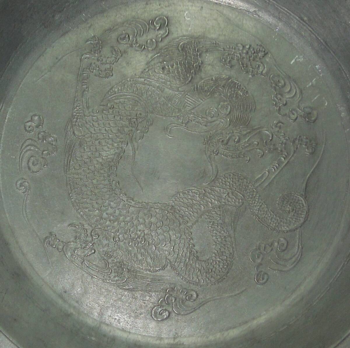 煎茶道具  錫 雲龍 瓶座 急須台  茶盆  径:約24.6cm