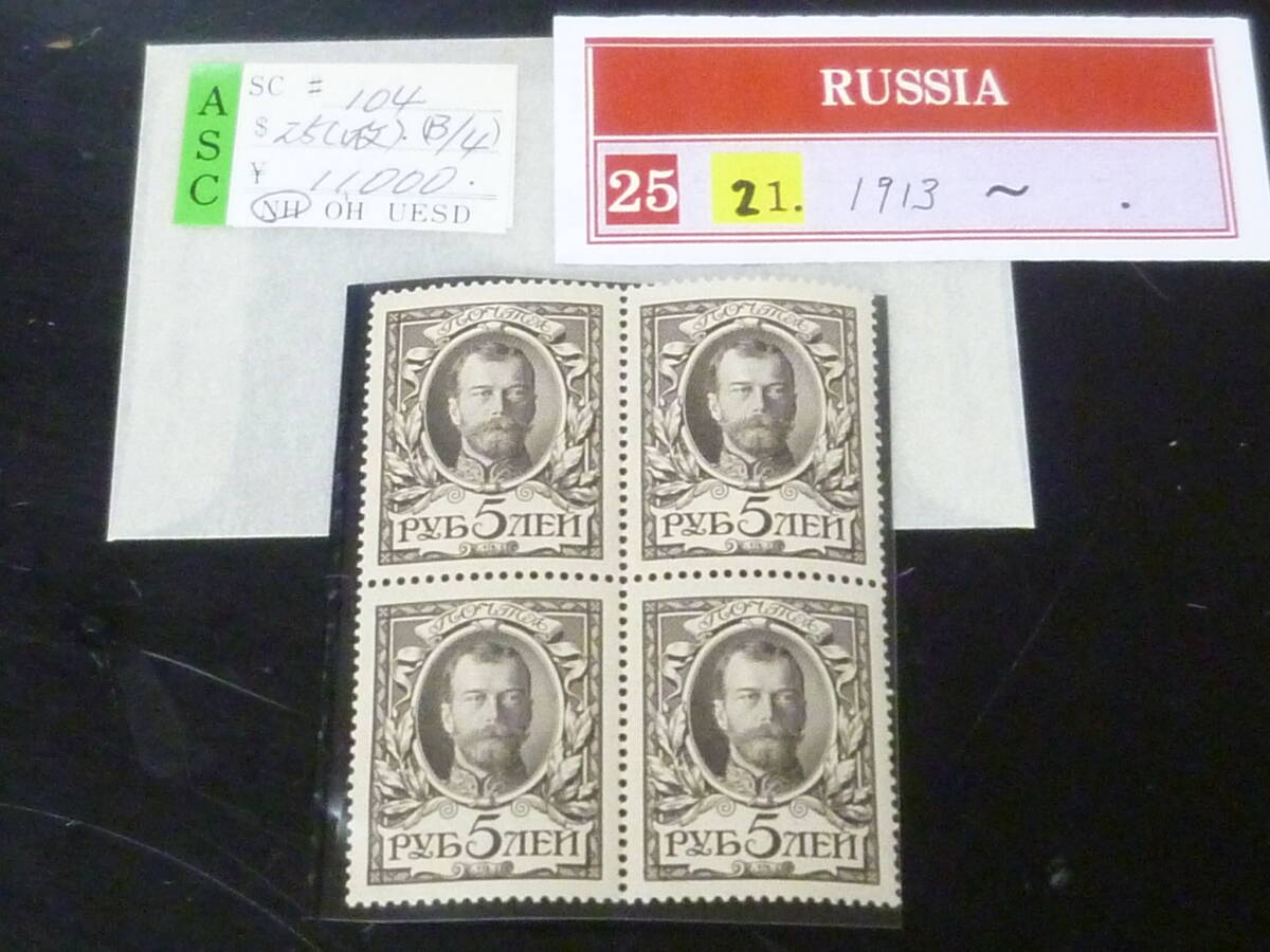 25F A №21 ロシア切手 1913年 SC#104 5r 田型 未使用NH・VF ※説明欄必読