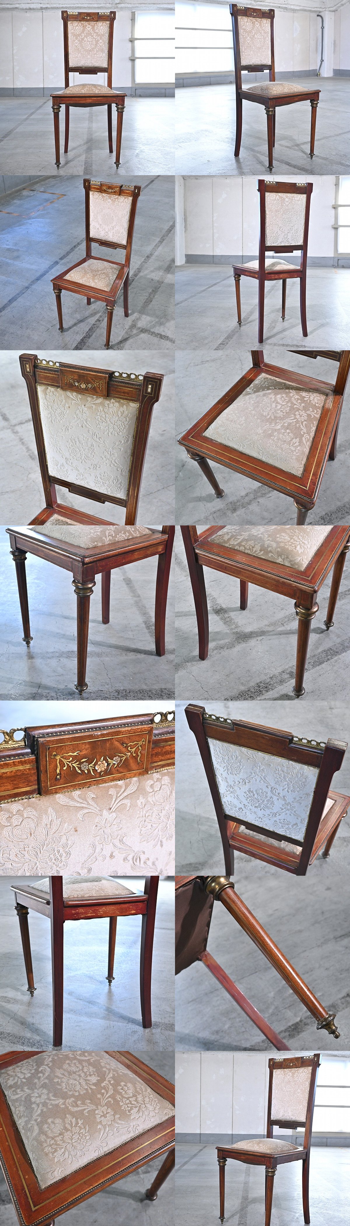 フランスビンテージ ルイ16世様式 ダイニングチェアb ウォールナット材 象嵌 リビング アンティーク_ロココ バロック 15 マルニ