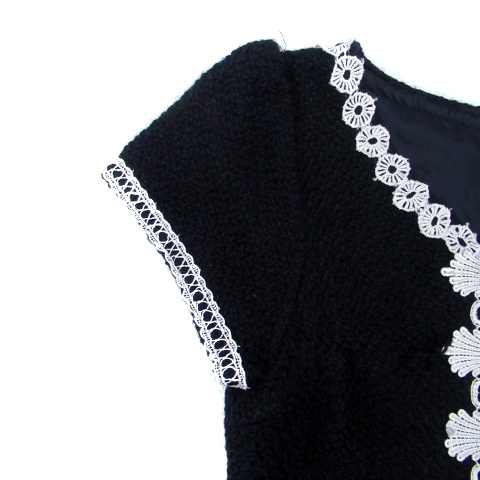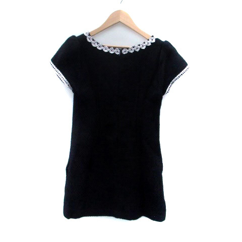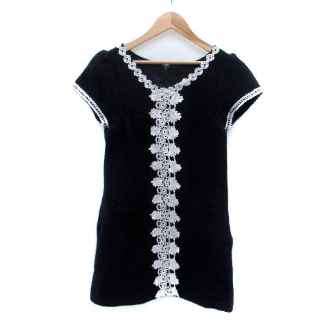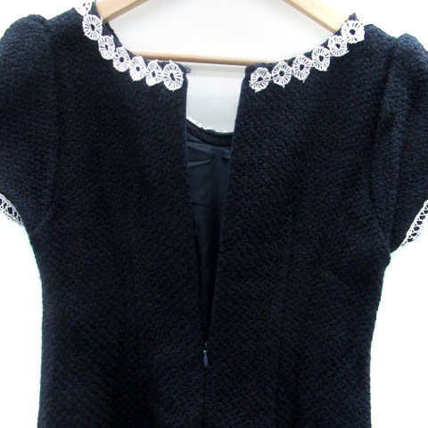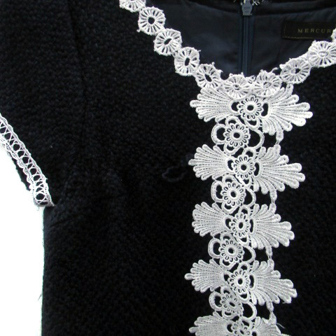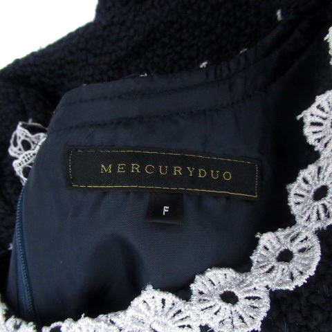 マーキュリーデュオ MERCURYDUO ワンピース ミニ丈 ラウンドネック 半袖 レース ウール F 紺 ネイビー オフホワイト /HO39 レディース