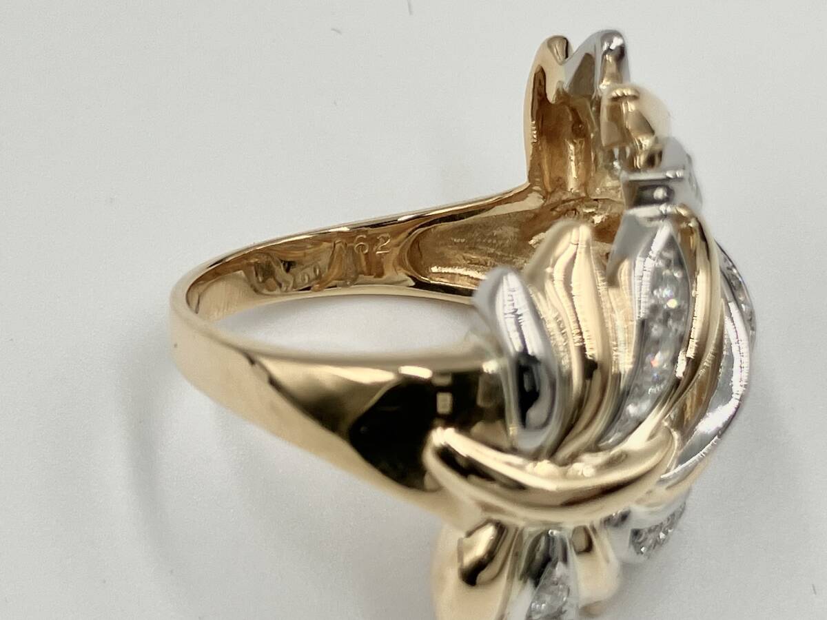 カラット数:0.62ct リングサイズ:約 14号 リング幅:約 2.1cm 高さ:約 2.2cm 幅:約 2cm 総重量:約 11.5g サイズ表記(~cm位)は目安です。ブランドやデザインによって多少前後する場合がございます。予めご了承の上ご注文ください。 ![]() | ||||||