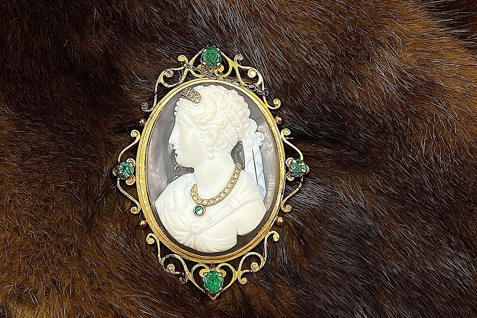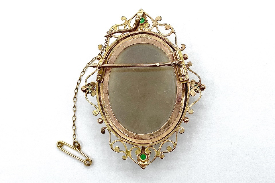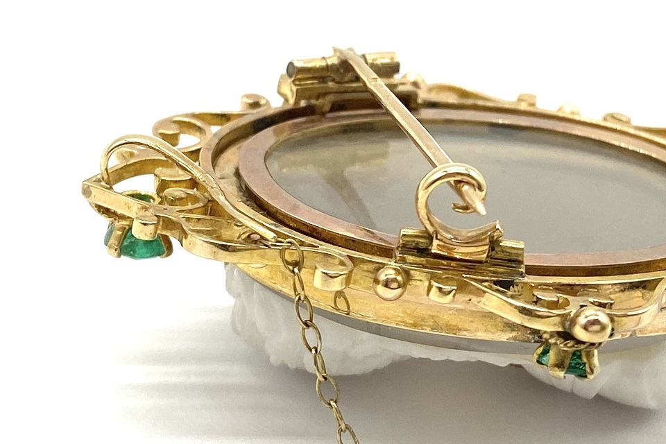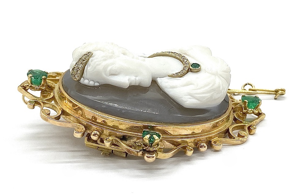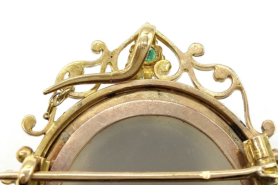 品名 | 【Stone Cameo 】 K18YG/PGストーンカメオ エメラルド ダイヤモンドペントップ兼ブローチ |