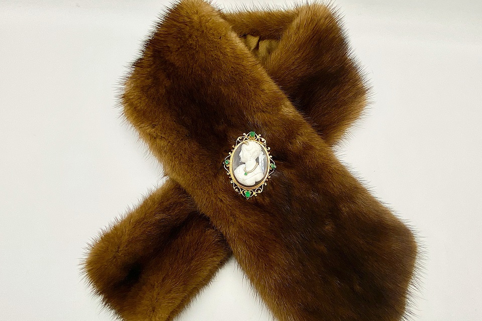 解説 | アンティークのストーンカメオブローチに、後の時代、ヘッドバンドとネックレスを加飾しています。威厳ある面持ちが、記憶にずっと刻まれるよう・・・! (地金分析結果K18、チェーン非貴金属) |