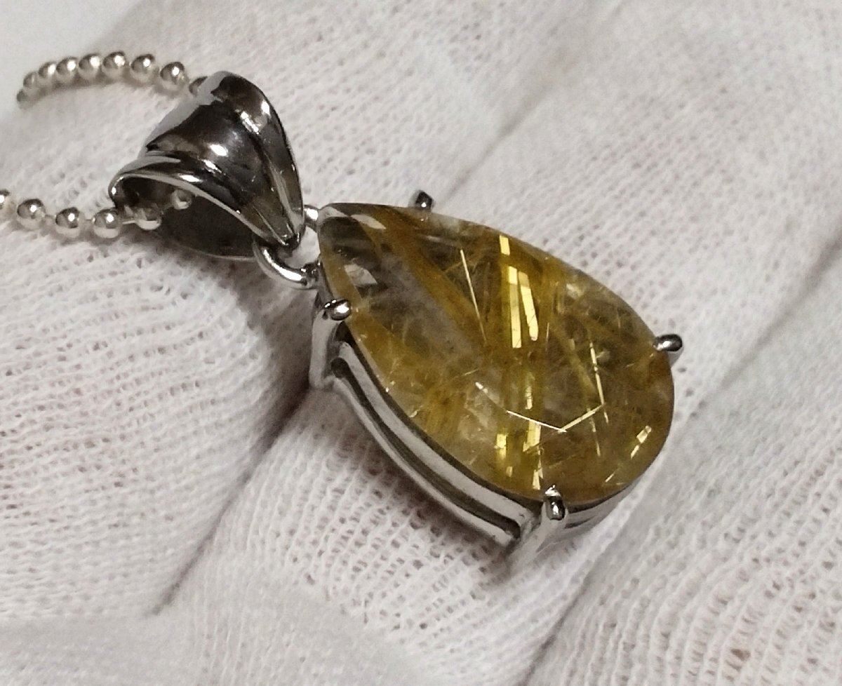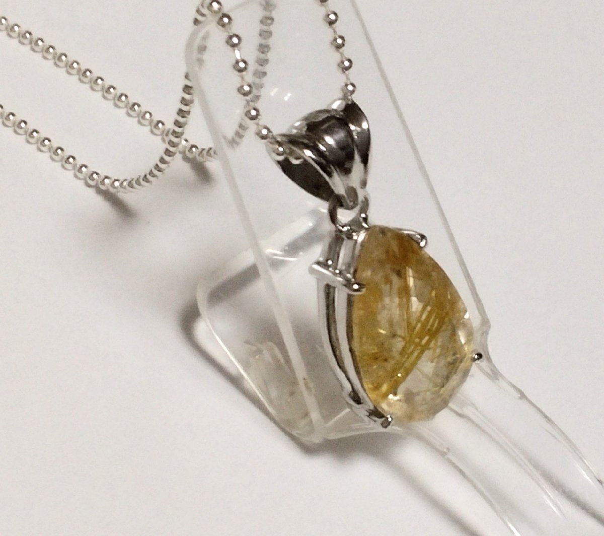 | 素材 | ◆素材:SILVER925製・ ロジウム仕上げ(刻印有り) 石:ルチルクォーツ【金針水晶】 ★【ブラジル産】 ★重さ約4.14g ★色合い・・・クリア ゴールド |