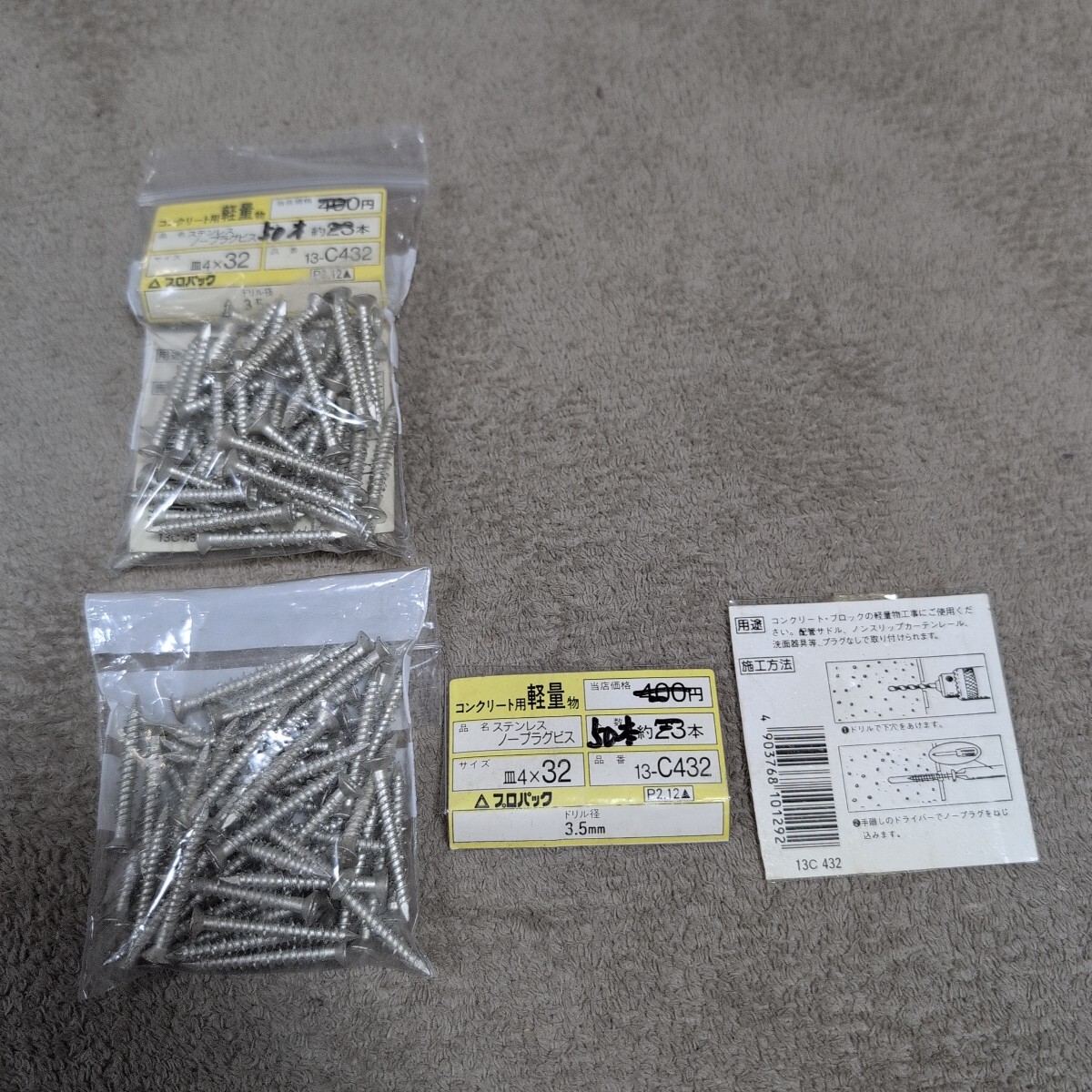 ジャンク品/長期保管品/中古品/WAKAI/若井産業/13-C432/ノープラグビス/ステンレス/皿4×32mm/1P約50本入り×2Pセット