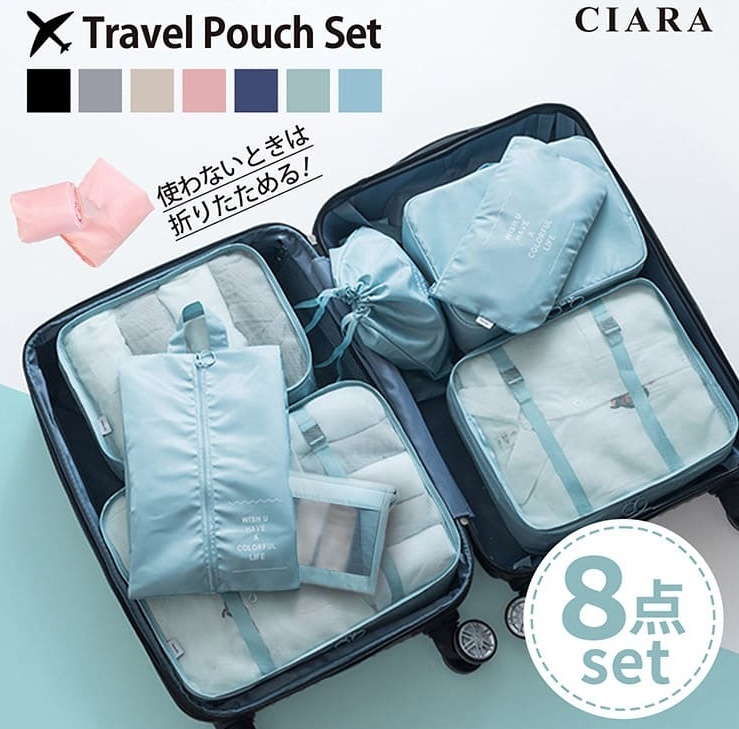★CIARA トラベルポーチ 8点セット (吊り下げ 取外し セット 旅行ポーチ 洗面用具 グリーン スキンケア ポーチ 小物入れ 大きめ)