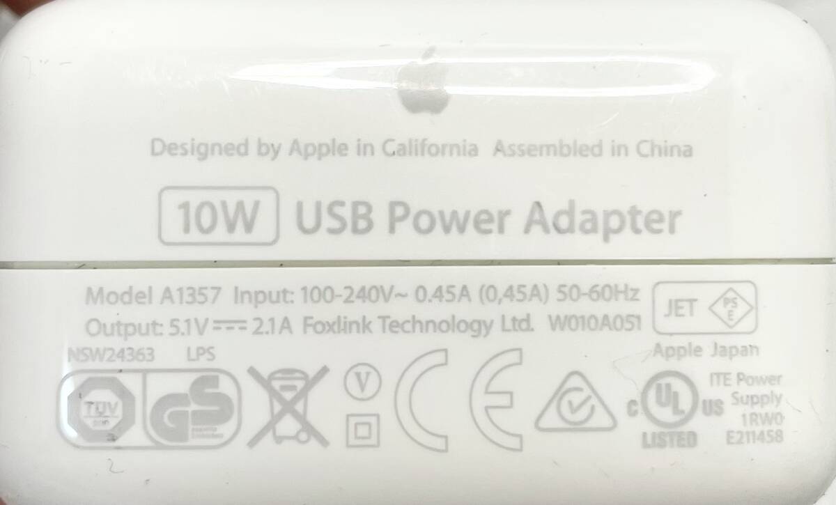 4332//Apple 純正品 10W USB Power Adapter A1357 充電器 2個セット 動作品 | |||