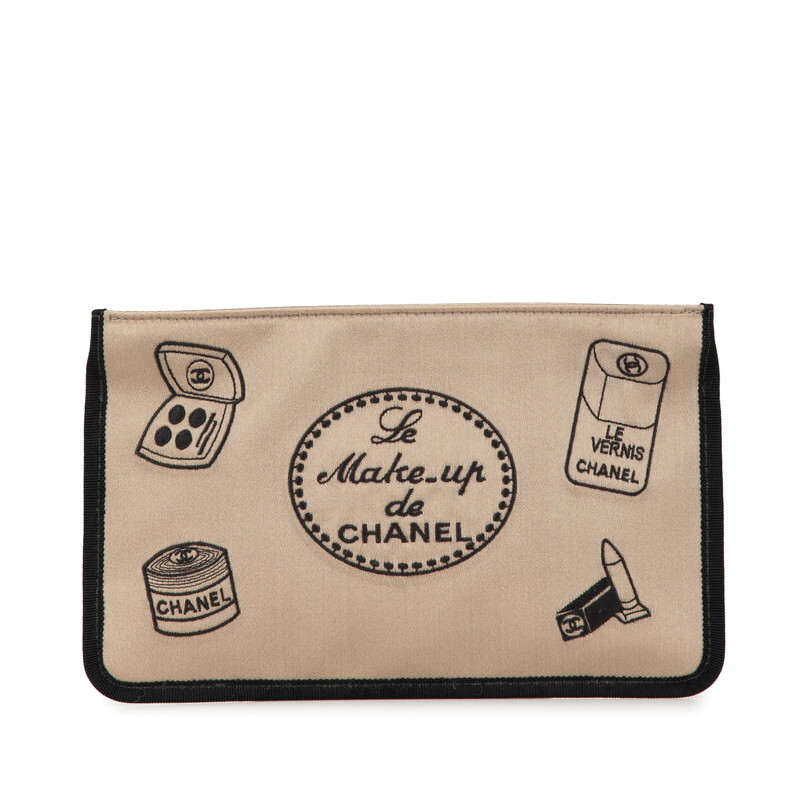 シャネル コスメ柄 ポーチ ベージュ サテン レディース CHANEL 【中古】