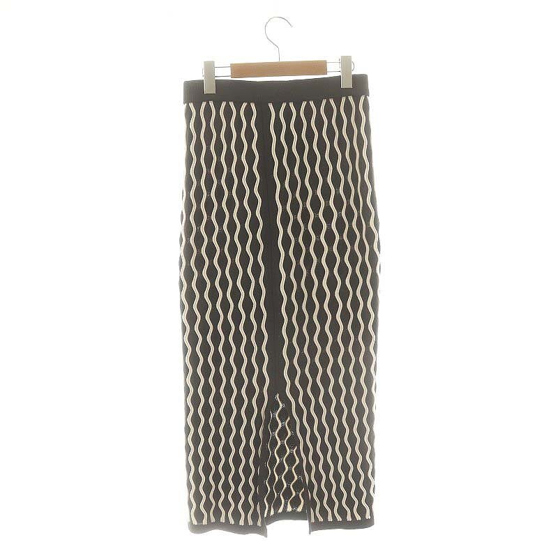 ラウンジドレス ガリャルダガランテ Loungedress GALLARDAGALANTE Waveタイトスカート ロング ニット F チャコールグレー オフホワイト