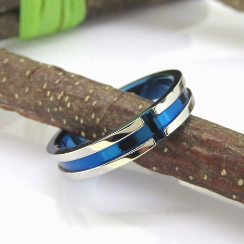 ♪♪送料無料 ステンレス 7号 4mm幅デントクロスリング ブルー♪♪