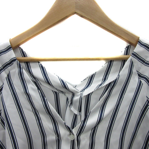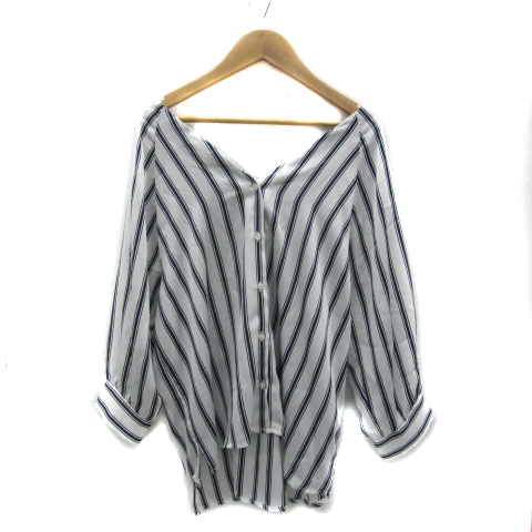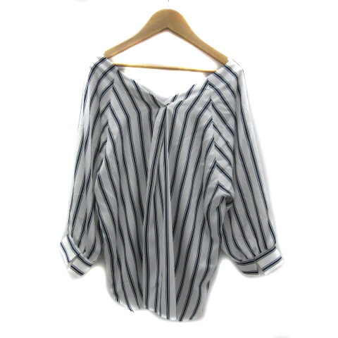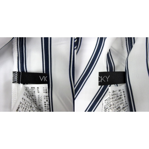 ビッキー VICKY シャツ ブラウス 七分袖 Vネック ストライプ柄 2 白 ホワイト 紺 ネイビー /YS32 レディース