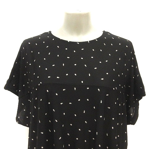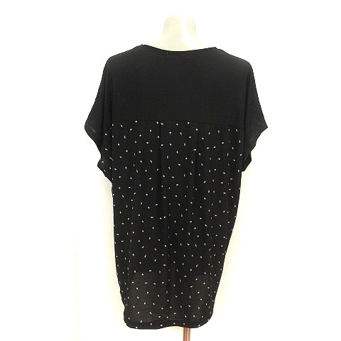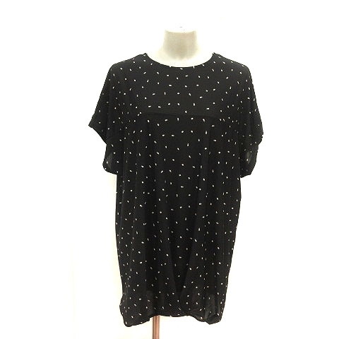 シューラルー SHOO・LA・RUE チュニック 総柄 ドルマンスリーブ 半袖 L 黒 ブラック 白 ホワイト グレー /MS レディース