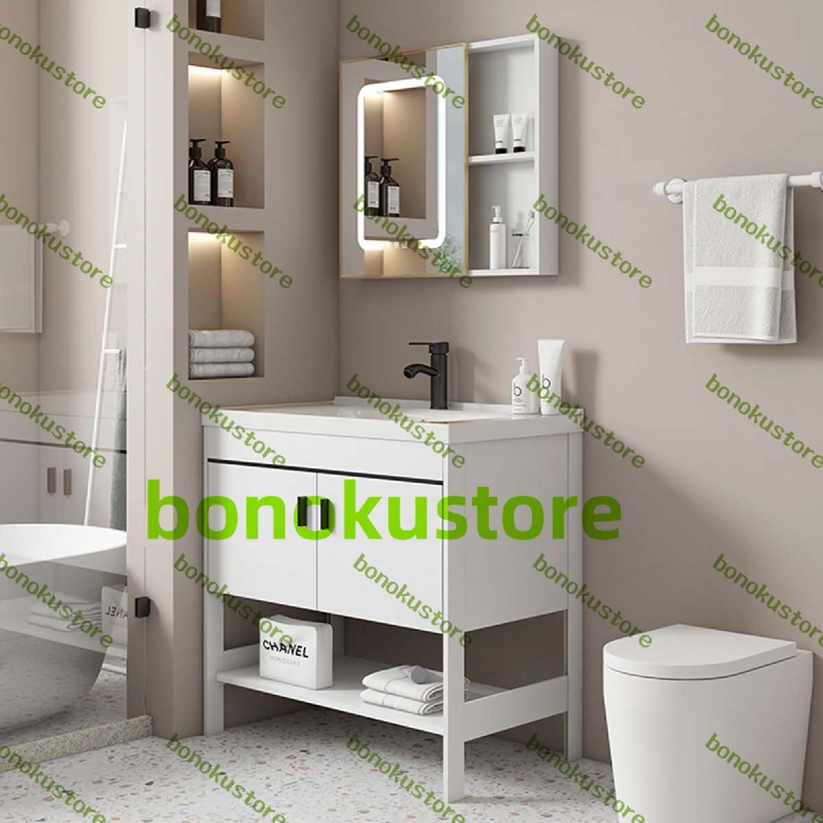 ミラー付き洗面化粧台バスルーム収納キャビネット洗面台床置き洗面台バルコニーシンプルな洗面台垂直浴室洗面器洗面台 白い60*45*81cm