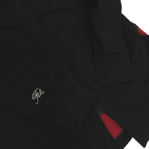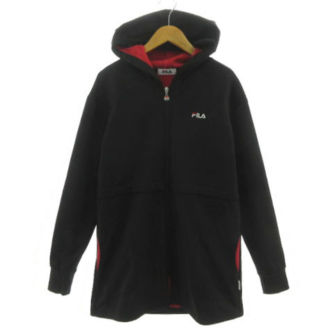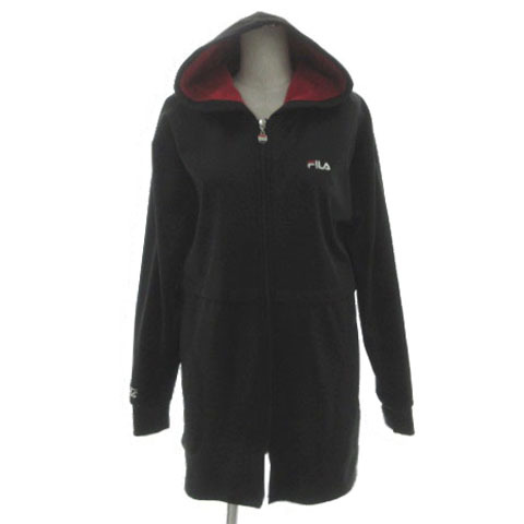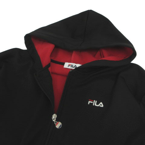 フィラ FILA ジャケット ソフトシェルジャケット フーディー ロゴ刺繍 ミドル丈 ジップアップ 裏地フリース ブラック 黒 M レディース