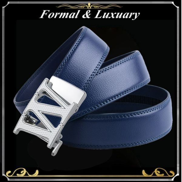 ベルト j52【紺】ネイビー 穴なし 無段階調整ベルト ゴルフベルト 人気 オートロック メンズ 革 ジーンズ ビジネス カジュアル