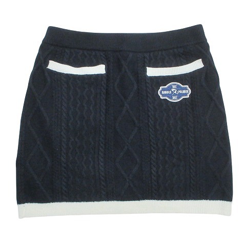 アーノルドパーマー GOLF 美品 ニットスカート ミニ AP220408H01 ゴルフウェア 大きいサイズ タイト ケーブル ワッペン ウール混 13号