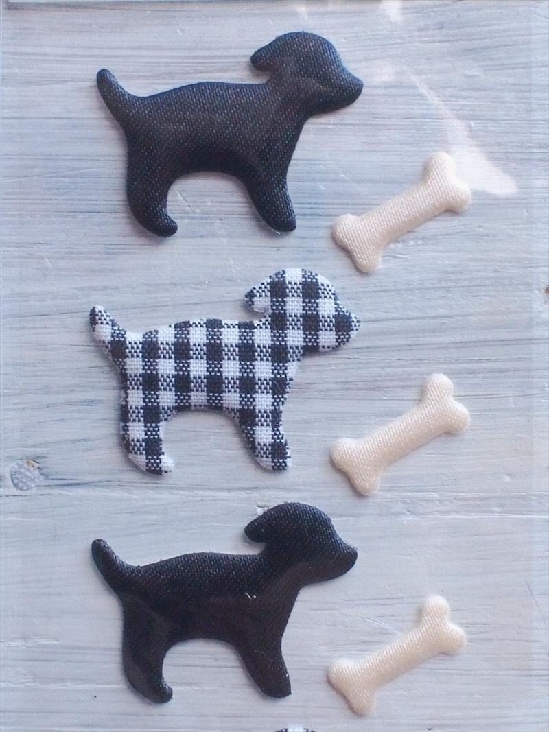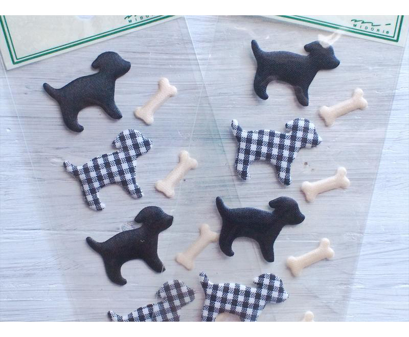レトロ文具ファンシー雑貨*立体クッションシール・犬と骨チェック・2シート☆デココレクション