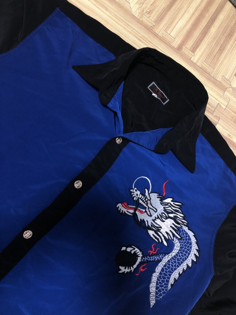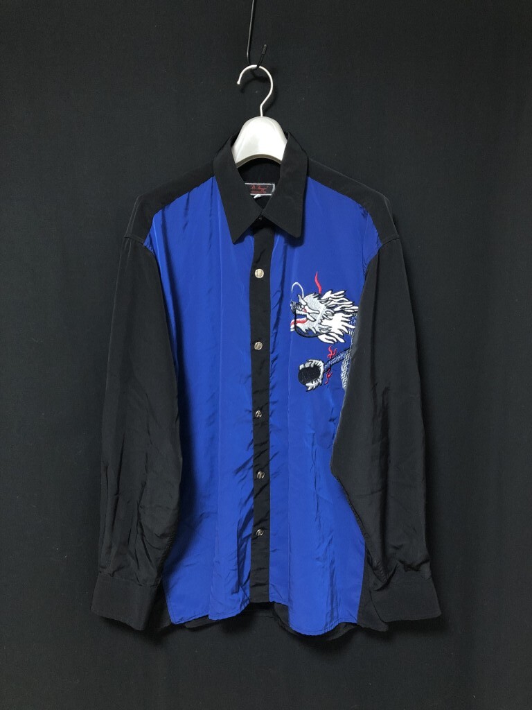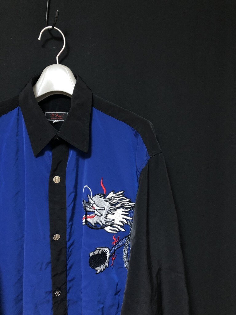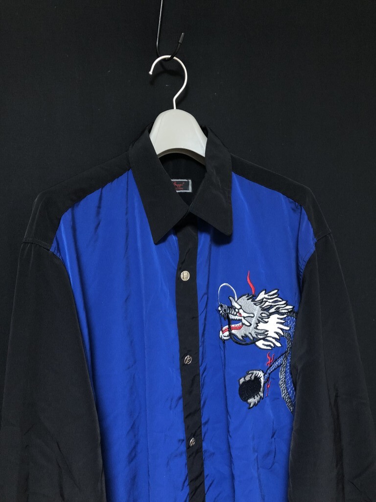 ヴィンテージ◆Di Baggio 長袖ポリシャツ ドラゴン刺繍 メタルボタン バイカラーXL