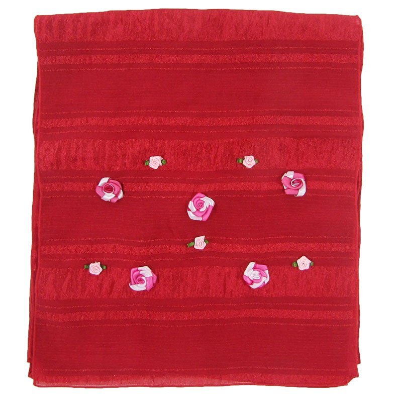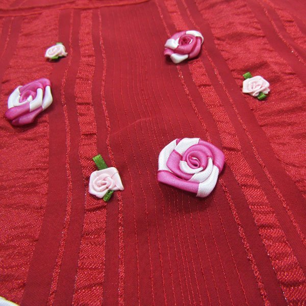 生地両端のたれ部分にリボンのバラ飾りが付いた兵児帯です
