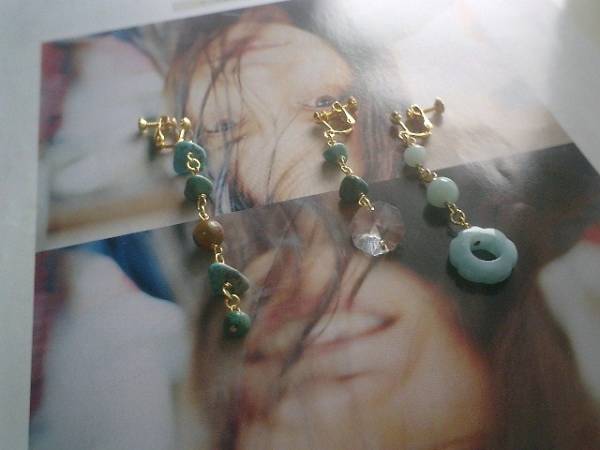 やさしい春に・・シリーズです♪お気に入りの水色と小鳥さん・・ブルーグレーのアマゾナイトとターコイズのイヤリング3本セットです♪デザイン違い3本です♪色々な組み合わせで楽しんでいただけます♪♪スワロを合わせて大人のロマンチックしています♪アマゾナイトは6ミリ、8ミリの丸玉、15ミリのフラワーリングです♪ターコイズは8ミリから11ミリ位のミニタンブル、スワロは14ミリのヘキサゴンです♪♪長さは左から8・5センチ、真ん中が6センチ、右端が6・5センチ位です♪それぞれペアでもお作り出来ます♪ピアスにも変更出来ます♪お揃いのイヤリングやネックレスやブレスレットも出品しています♪♪シンプルで飽きのこないいつまでも着けられるデザインを考えて作りました!ハンドメイドをご理解頂いてノークレーム、ノーリターンでお願いしま |