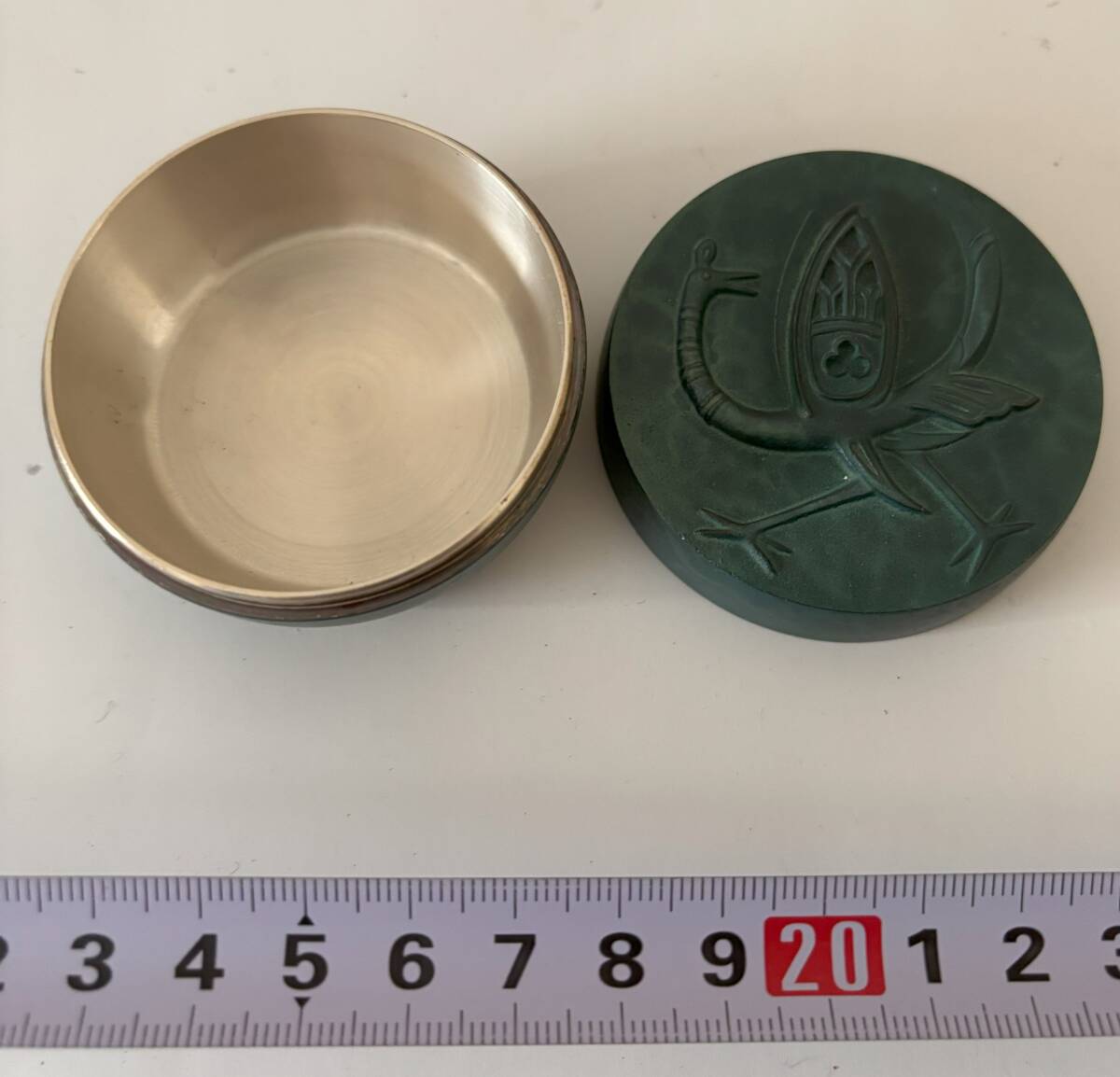 新宮殿落成記念 昭和43年 棗形 鳳凰文 ボンボニエール 青銅