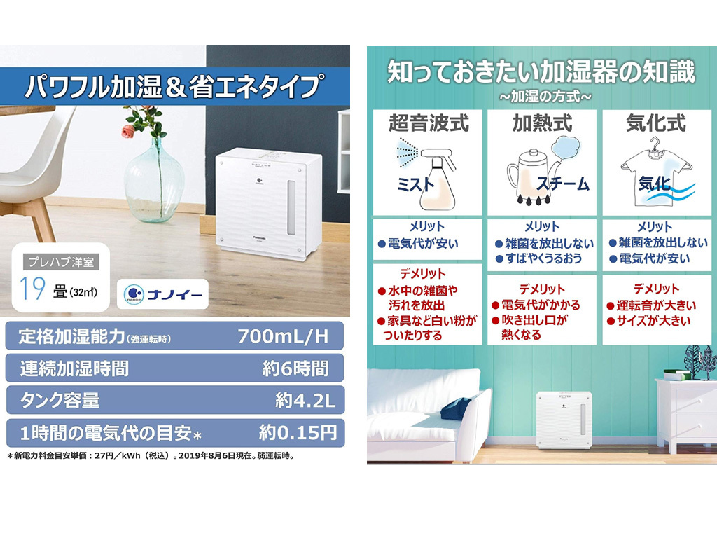 【パナソニック 加湿機 気化式 ナノイー搭載 19畳 クリスタルブラウン FE-KXS07-T 取り扱い説明書付属】 | |