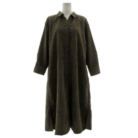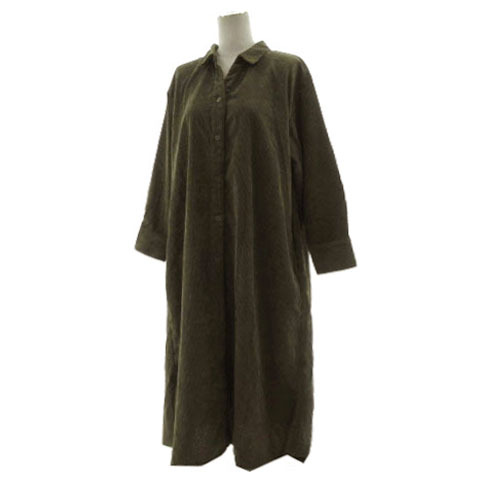 【仕様】シャツワンピース TYZ1092309A0002 スキッパーカラー 長袖 ロング丈 コーデュロイ フロントボタン留め