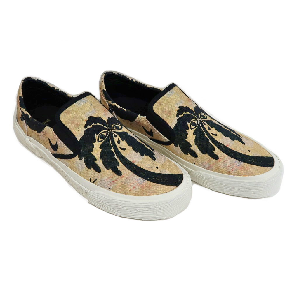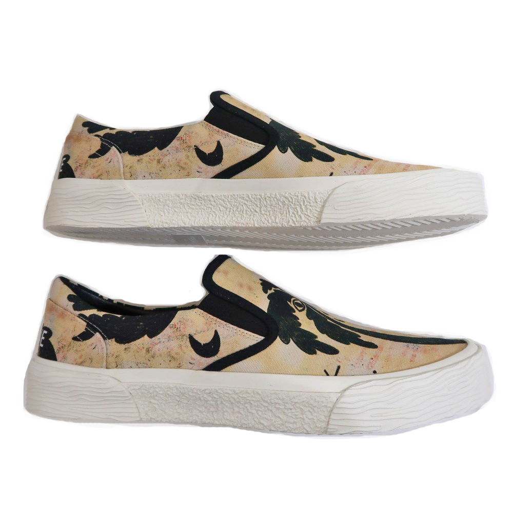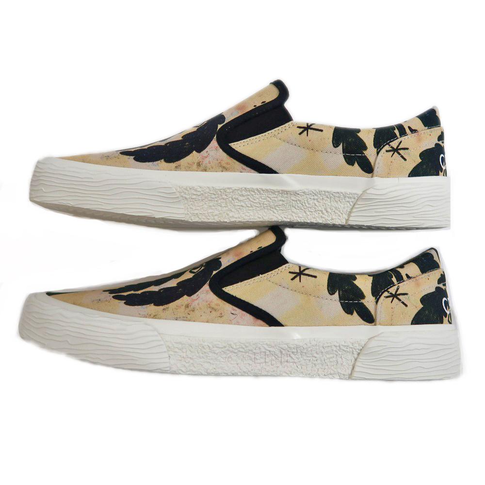 【名東】セリーヌ スリッポン サイズ43 ヤシの木柄 ベージュ系 ブラック メンズ シューズ 男 靴