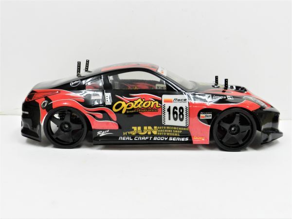 ☆ターボ機能・スペアボディー付☆2.4GHz 1/10 ドリフトラジコンカー ニッサン Z33 フェアレディーZ タイプ 黒赤 【塗装済み完成品・RTR】