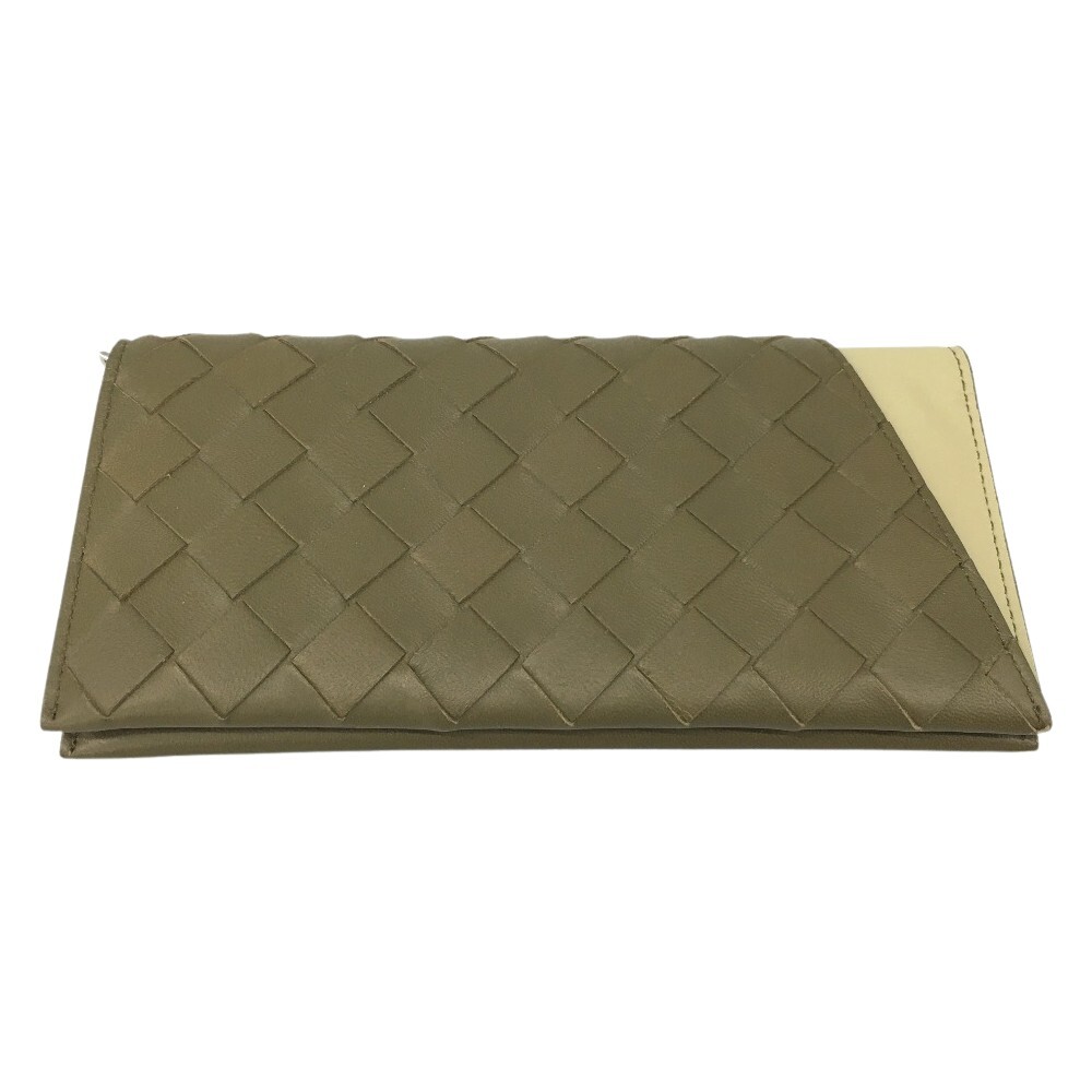【商品名】中古 BOTTEGA VENETA ボッテガヴェネタ 2つ折り長財布 イントレチャート オブリーク 箱・布袋付 マスタード 目立った傷や汚れなし