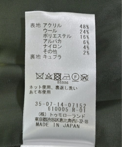 メイン素材:アクリル48%、毛24%、ポリエステル16%、アルパカ6%、ナイロン4%、その他繊維2%、(裏地)キュプラ